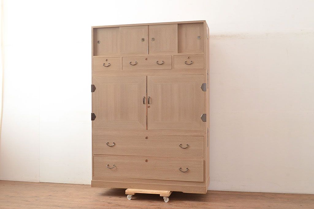 和箪笥 > 中古 国産 衣装盆付き 素朴な風合いが魅力の総桐箪笥(着物箪笥、衣装箪笥、和タンス、引き出し、チェスト、桐たんす)(R-048413)
