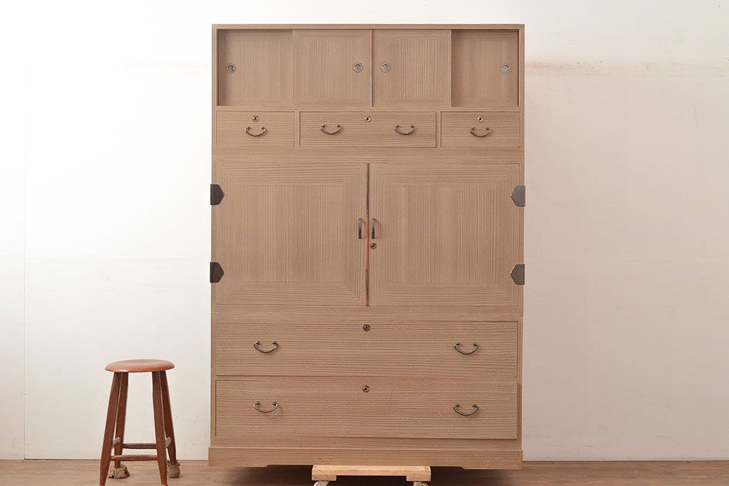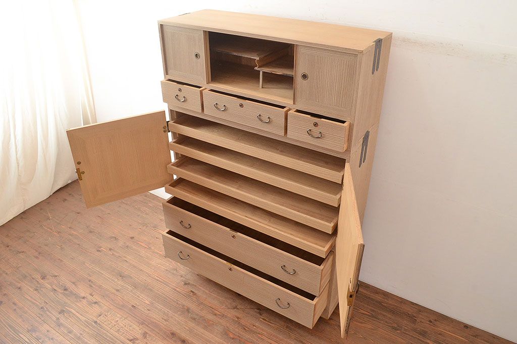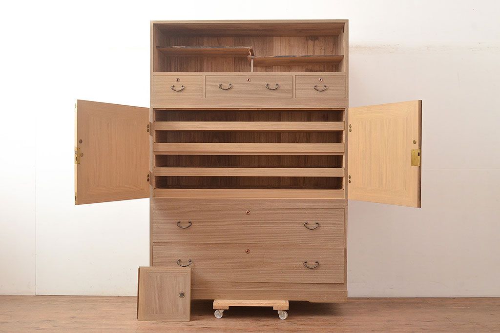 和箪笥> 着物箪笥 > 中古 国産 衣装盆付き 素朴な風合いが魅力の総桐箪笥(着物箪笥、衣装箪笥、和タンス、引き出し、チェスト、桐たんす)(R-048413)