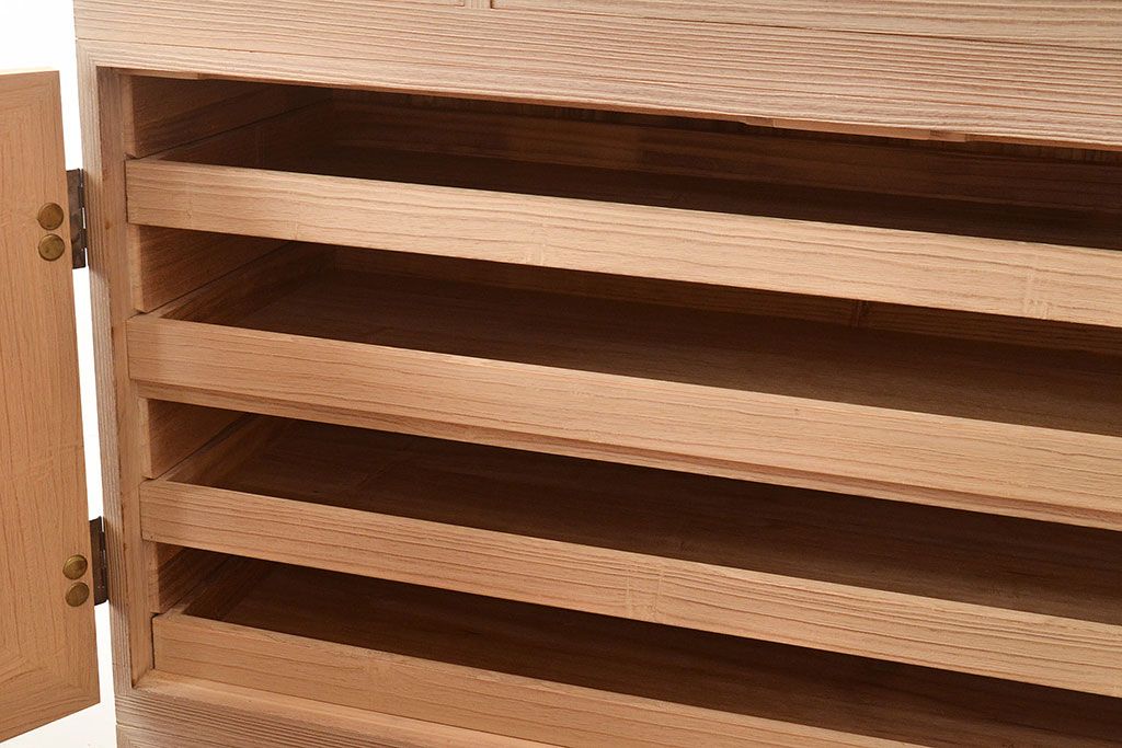 ・引き出し・引き戸・扉等の可動部分は調整してありますが、無垢材の特性として、湿度や気温などの変化によりきつくなったり緩くなったりする場合がございますので、ご理解の上お願いします。
