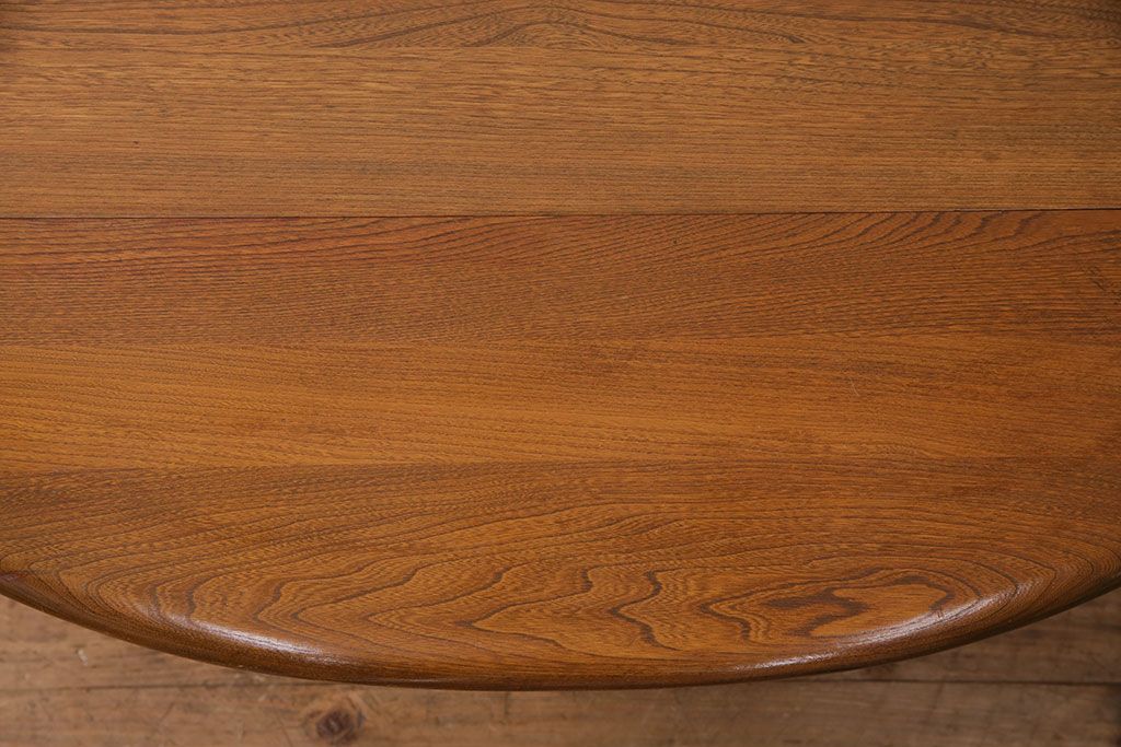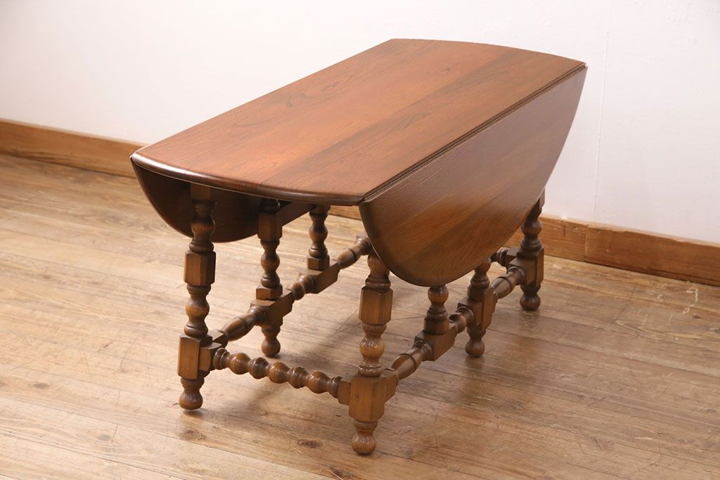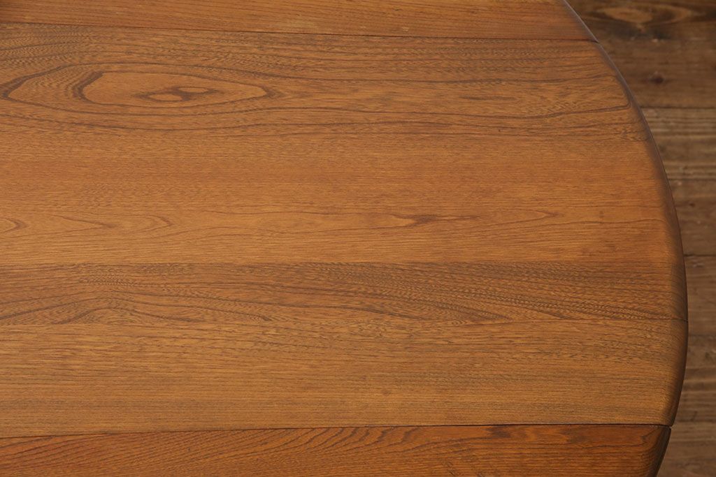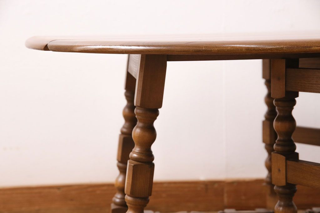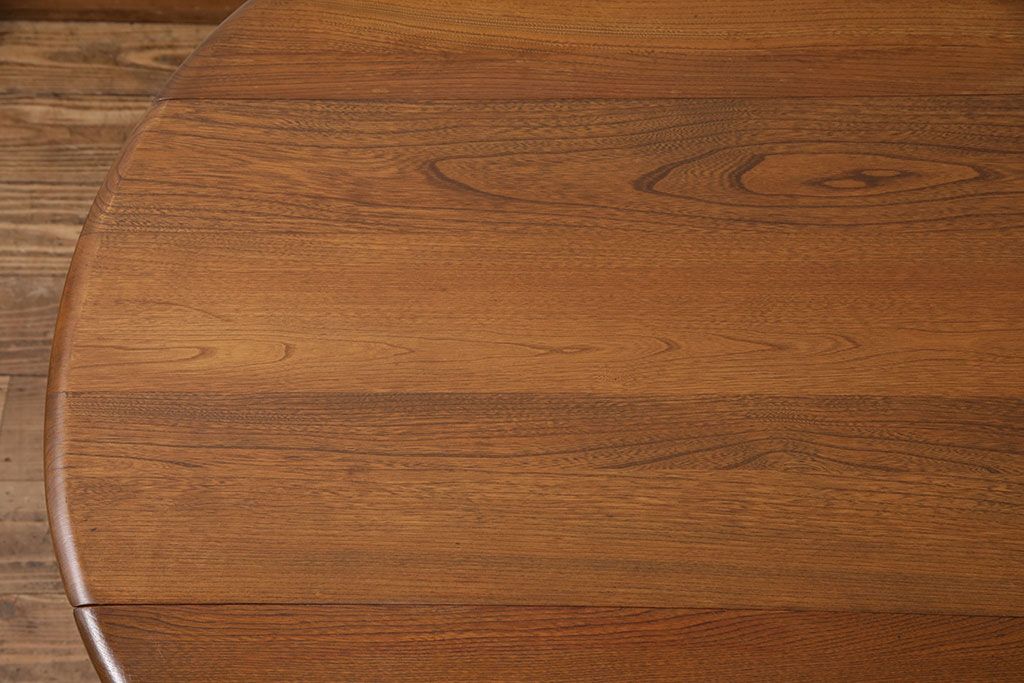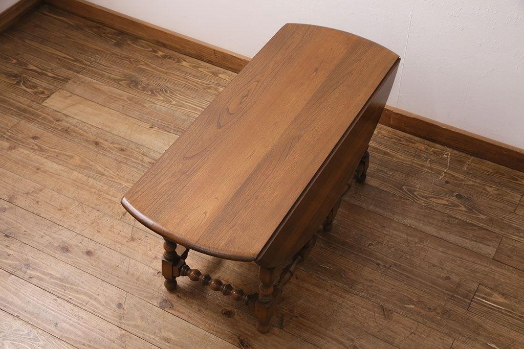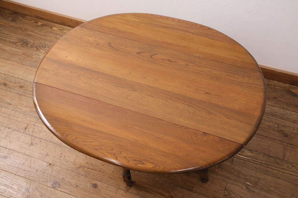 ヴィンテージ家具 美品 イギリス ERCOL(アーコール) ニレ材 挽き物の脚が目を引くバタフライテーブル(センターテーブル、ラウンドテーブル、ビンテージ)(R-049692)