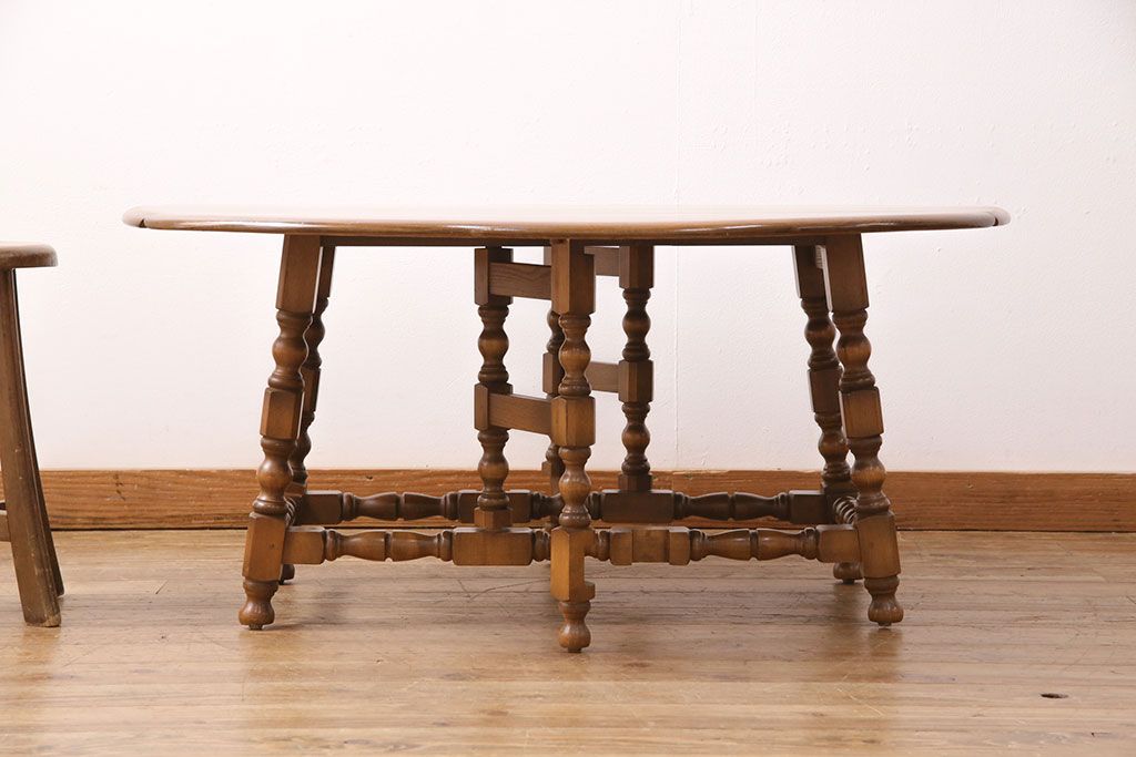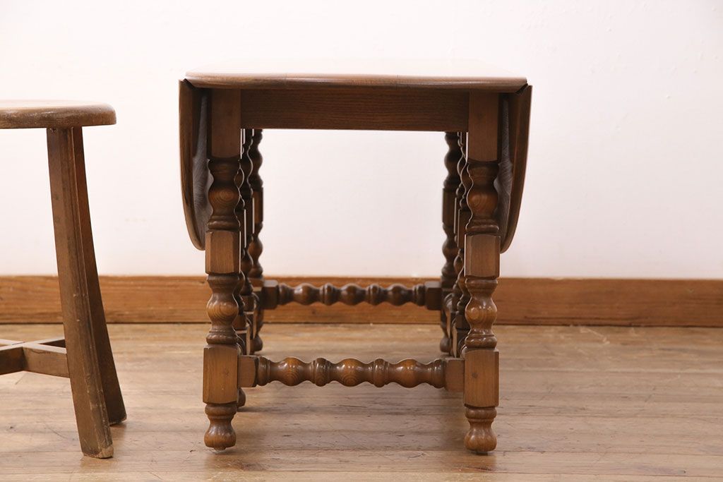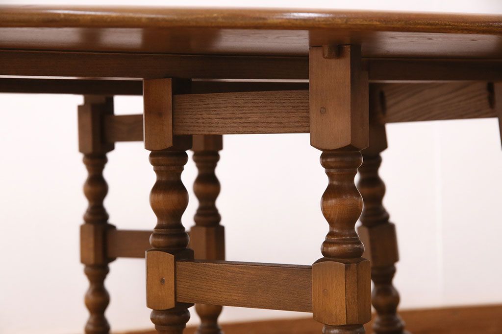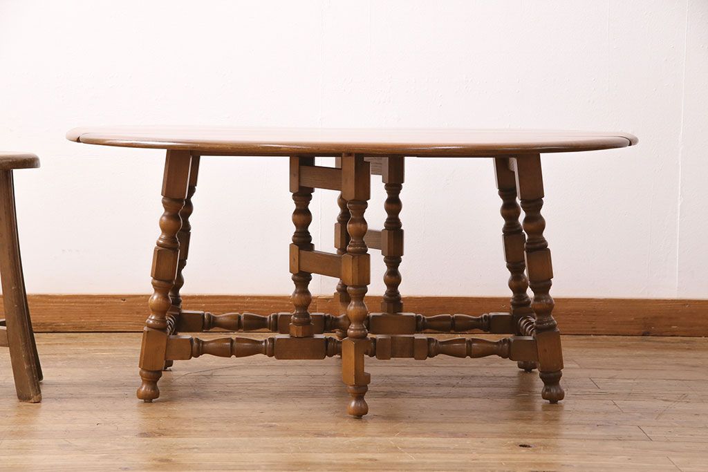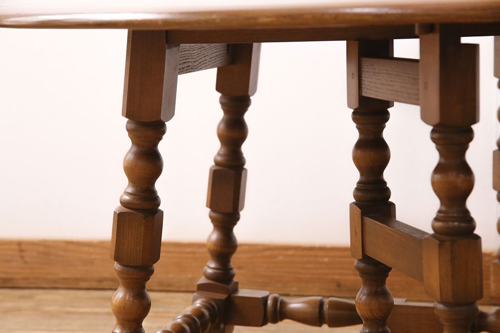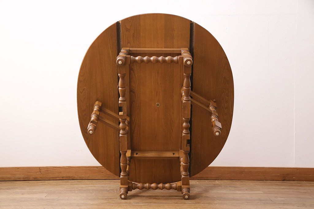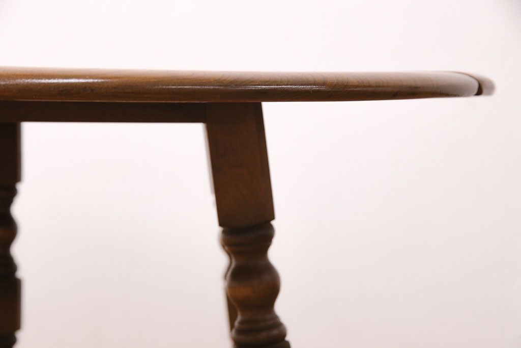 テーブル> 丸テーブル > ヴィンテージ家具 美品 イギリス ERCOL(アーコール) ニレ材 挽き物の脚が目を引くバタフライテーブル(センターテーブル、ラウンドテーブル、ビンテージ)(R-049692)