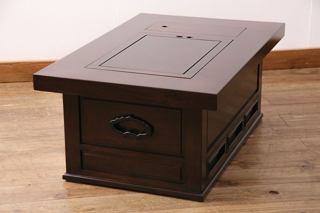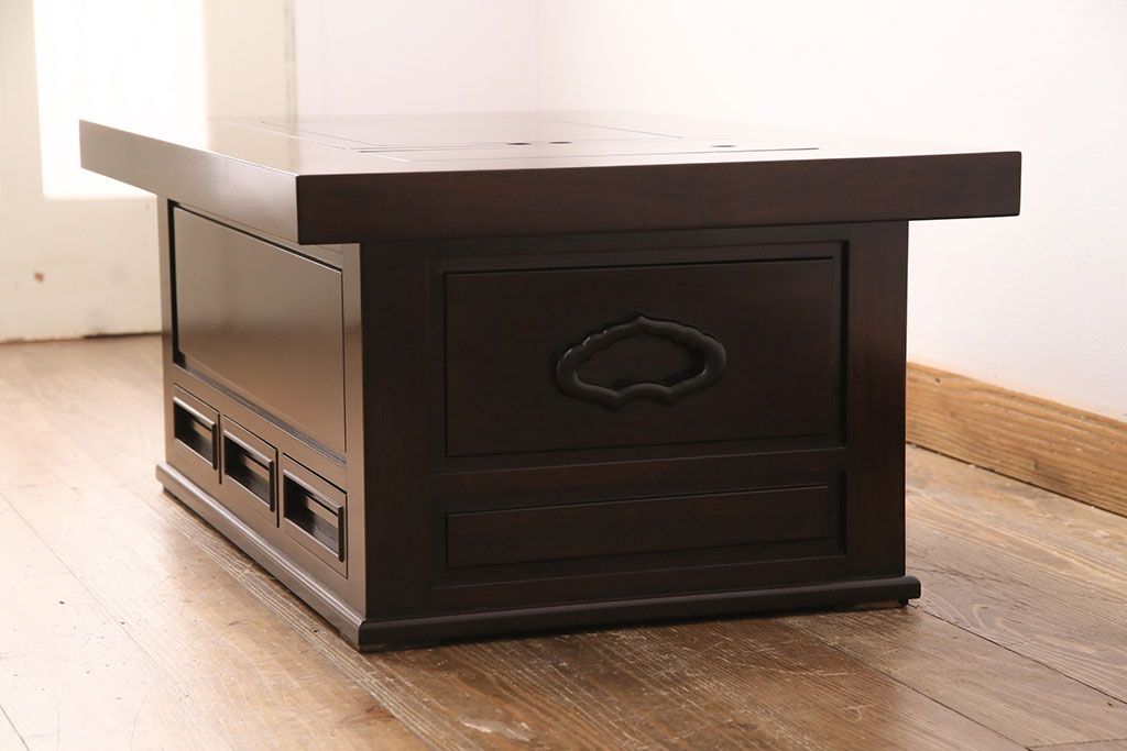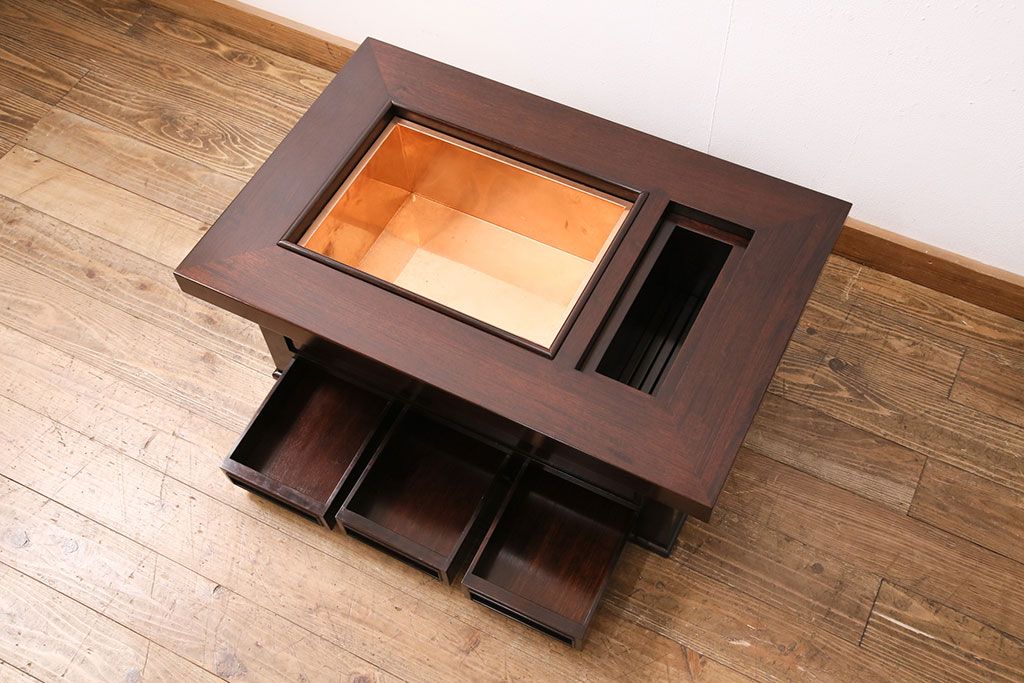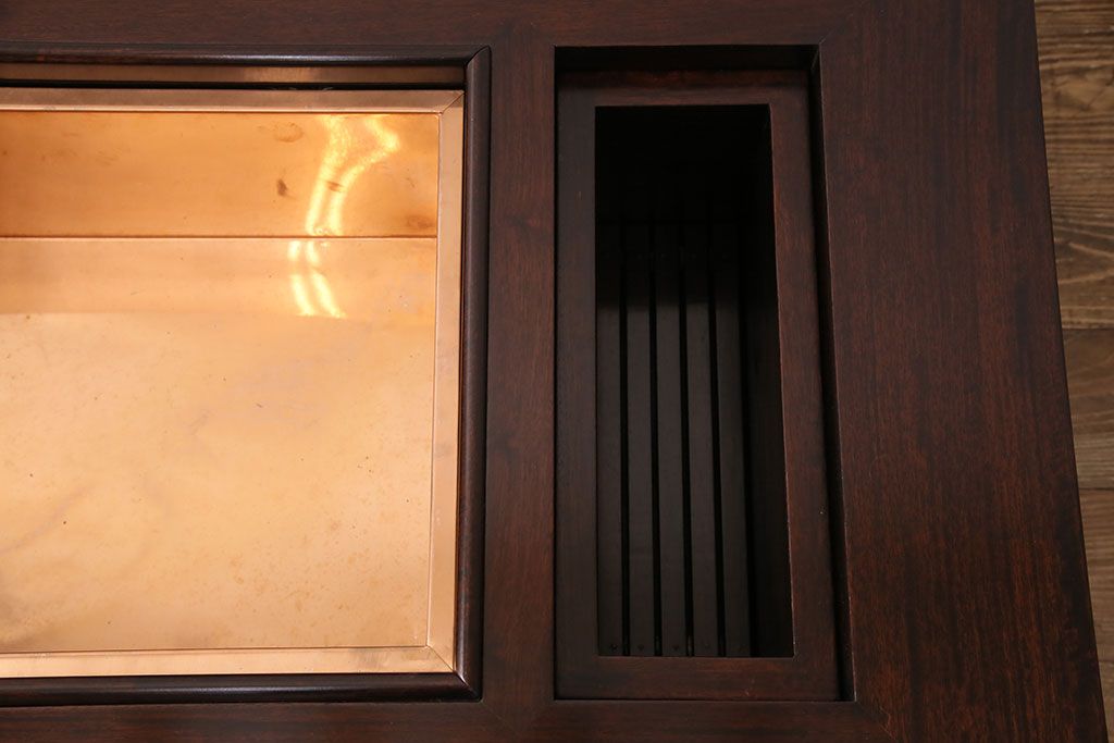 テーブル> 座卓 > ヴィンテージ雑貨 美品 昭和中期 唐木材 赤みがかった落ち着きある色合いが高級感漂う関西火鉢(長火鉢、囲炉裏、手あぶり、ビンテージ)(R-049724)