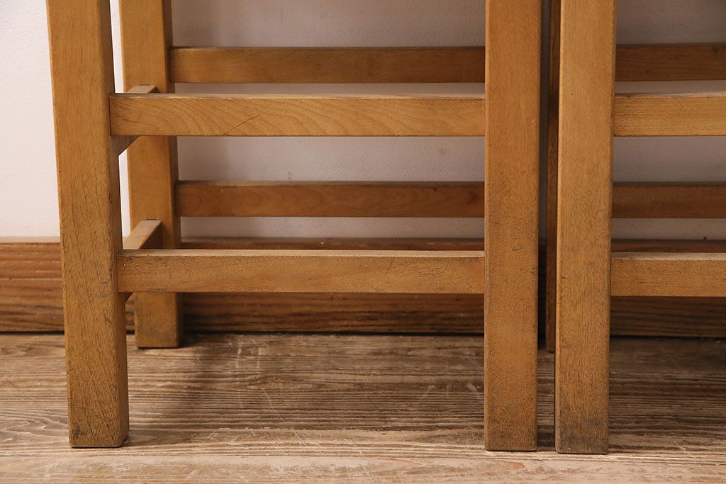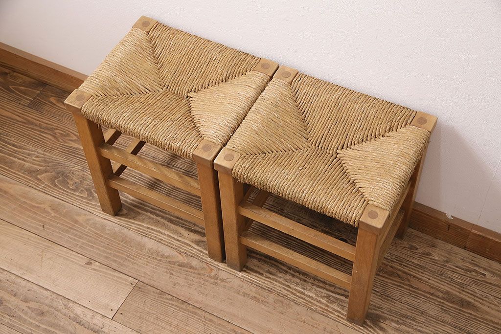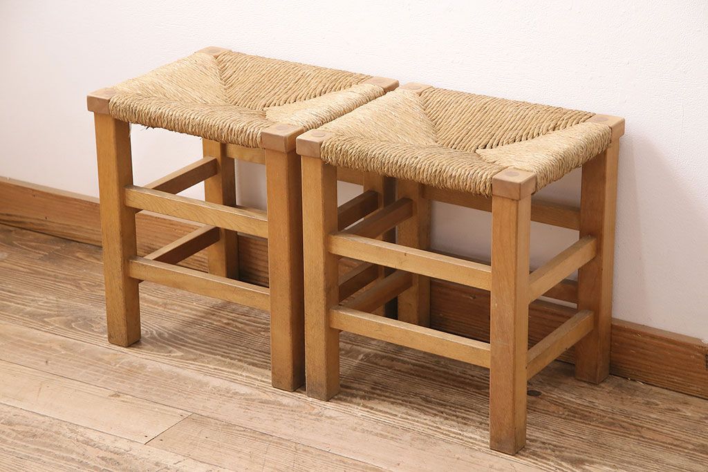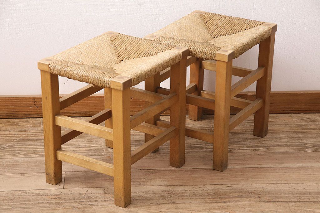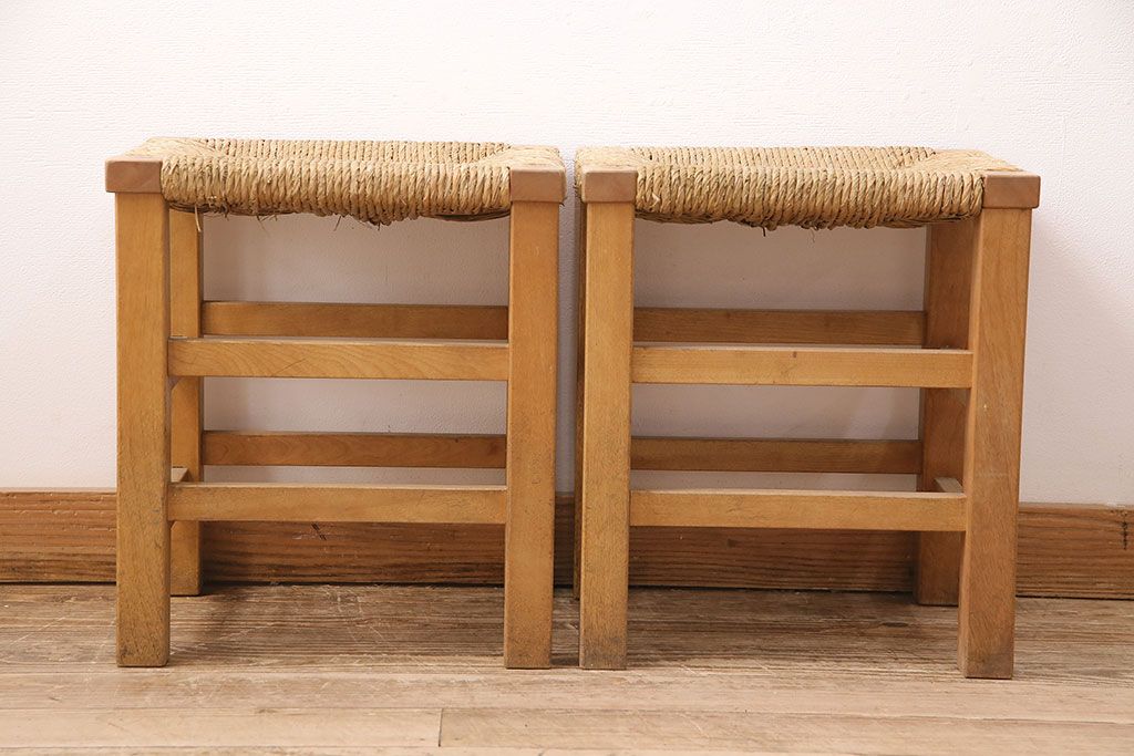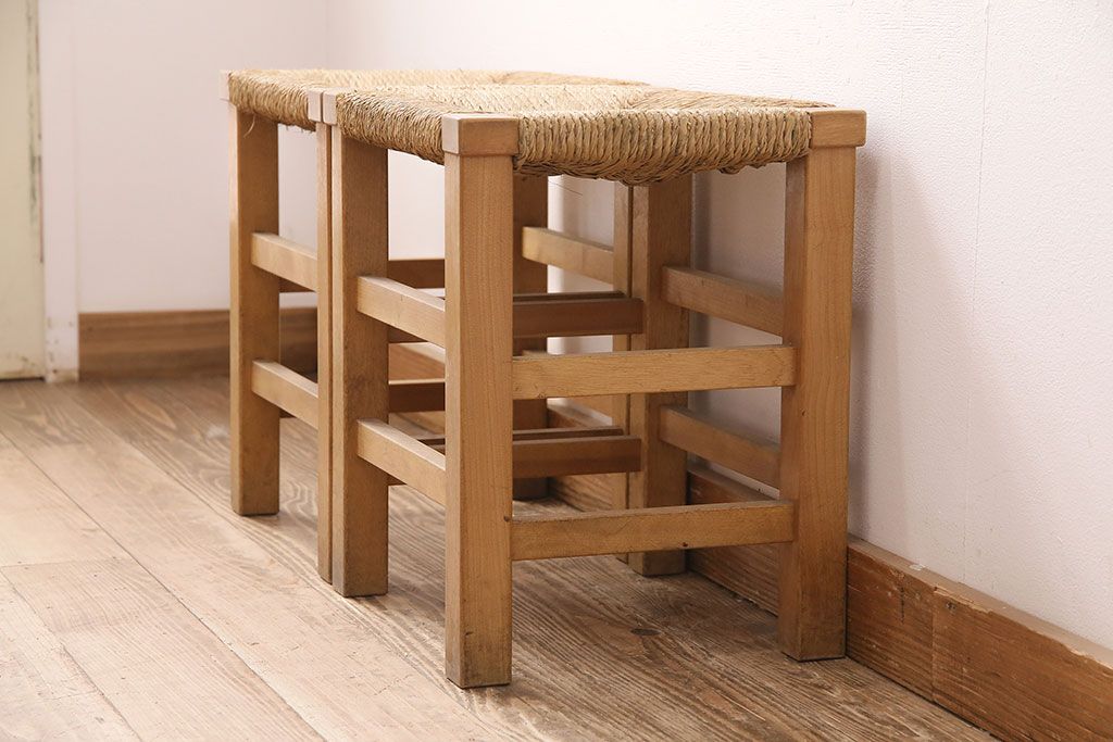 ヴィンテージ 松本民芸家具 初期モデル ラッシ座面がおしゃれ!素朴な木肌が味わい深いスツール2脚セット(チェア、椅子)(R-048714)です。