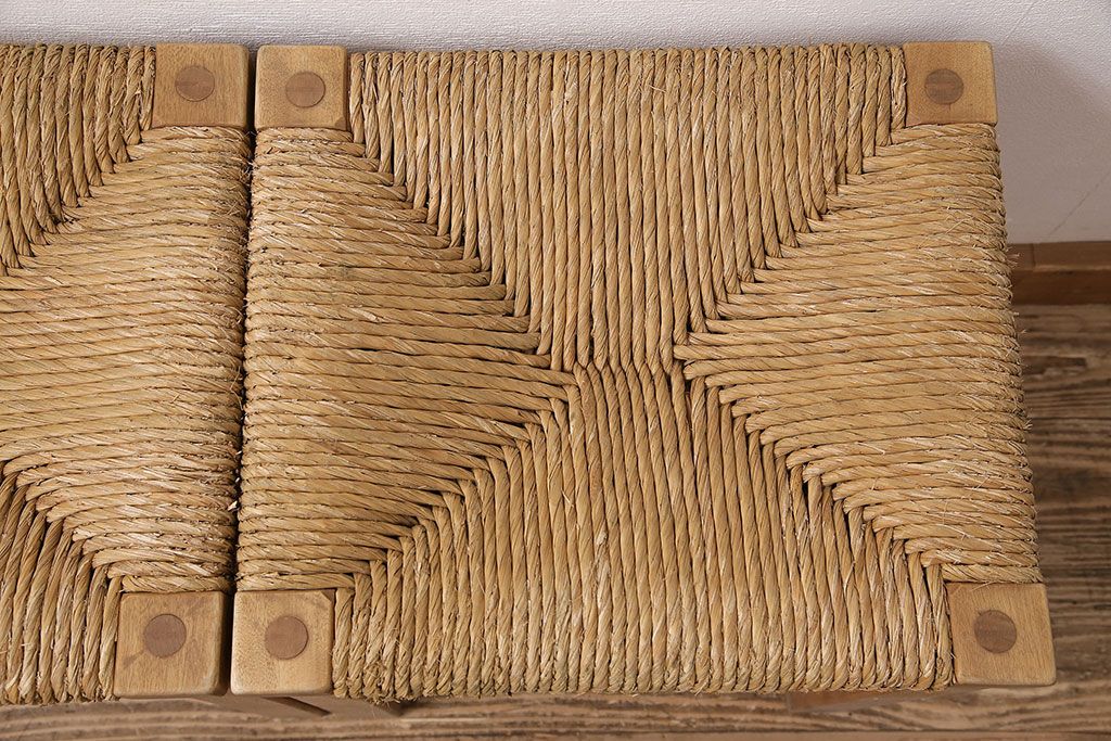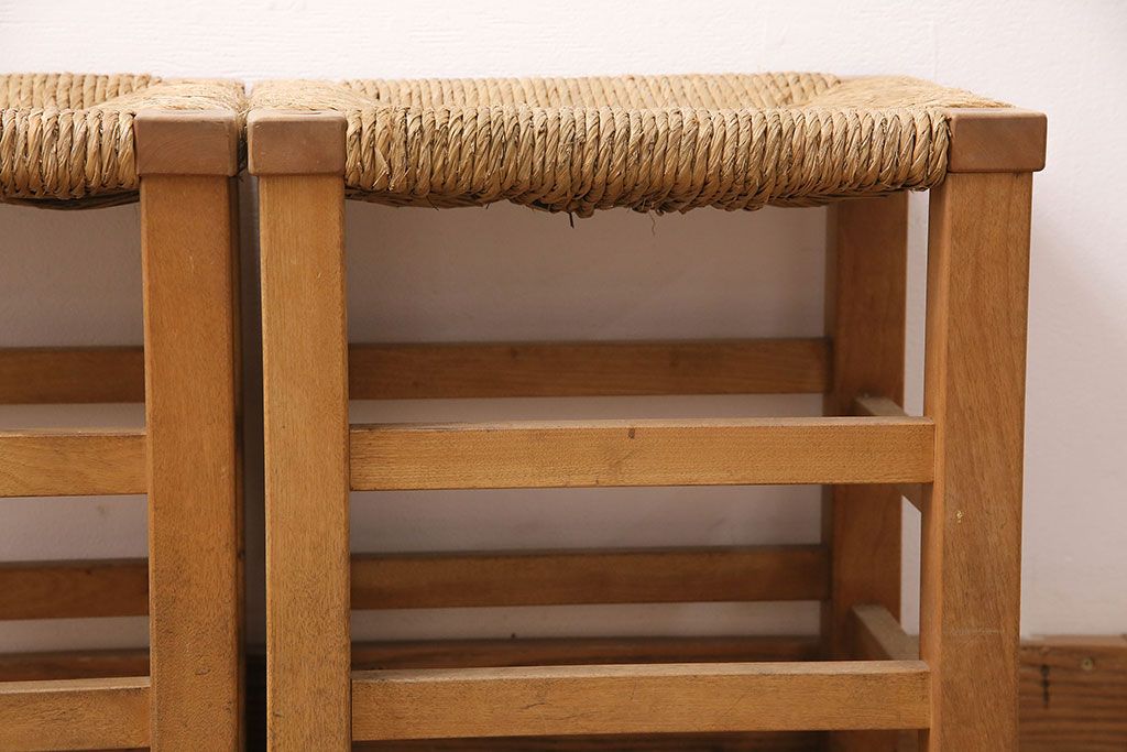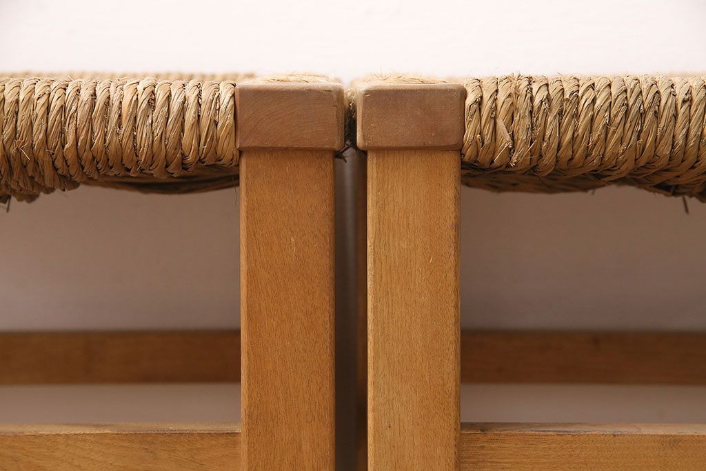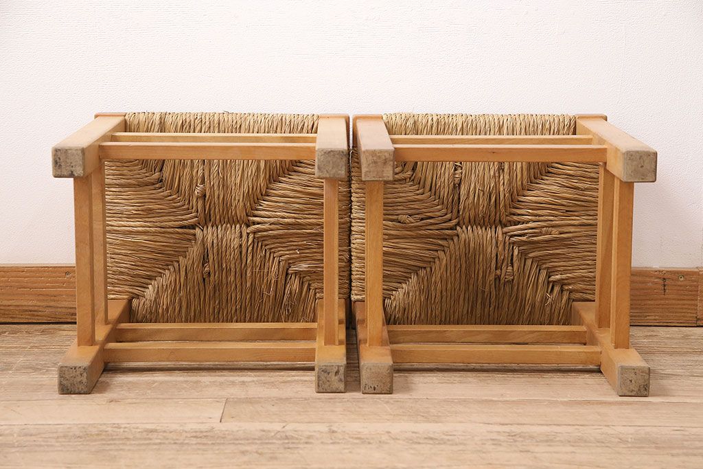 民芸家具 > ヴィンテージ 松本民芸家具 初期モデル ラッシ座面がおしゃれ!素朴な木肌が味わい深いスツール2脚セット(チェア、椅子、ビンテージ)(R-048714)