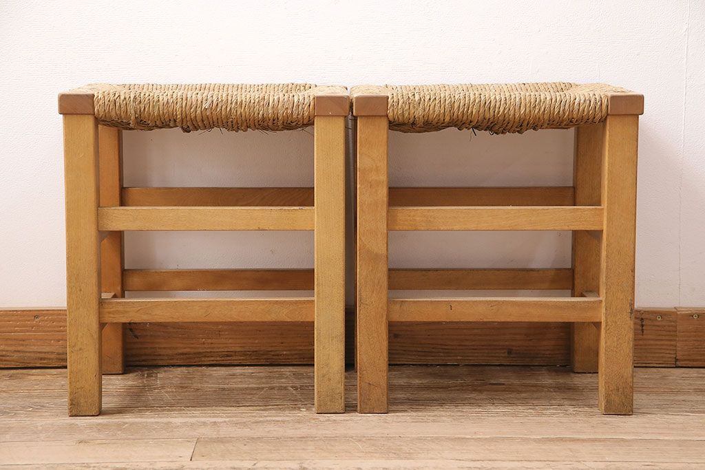 ヴィンテージ 松本民芸家具 初期モデル ラッシ座面がおしゃれ!素朴な木肌が味わい深いスツール2脚セット(チェア、椅子、ビンテージ)(R-048714)