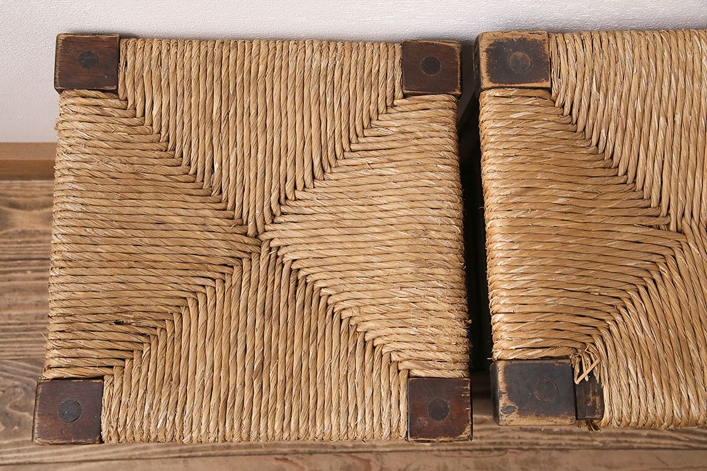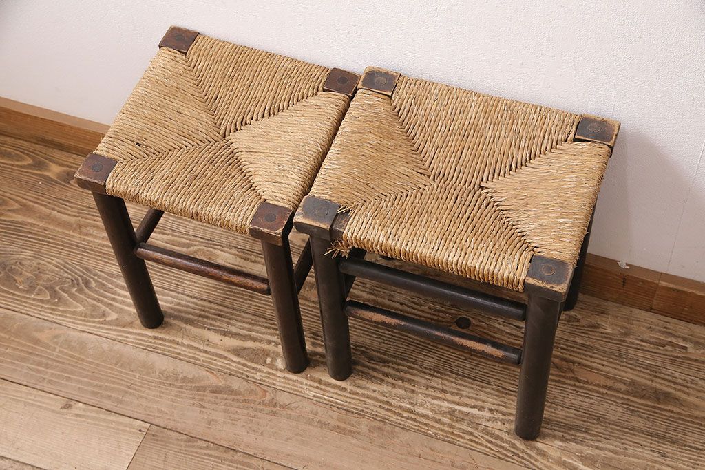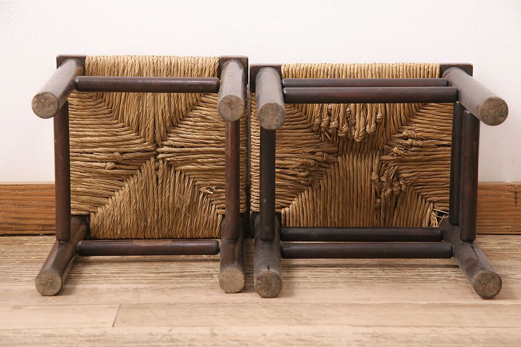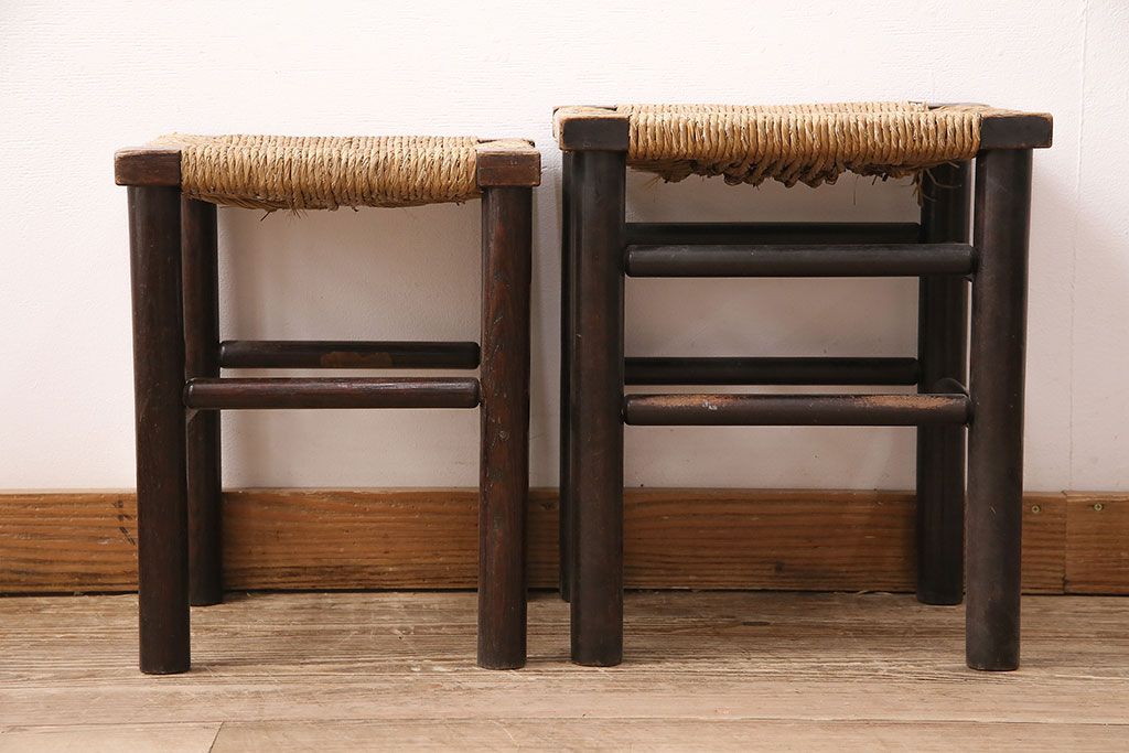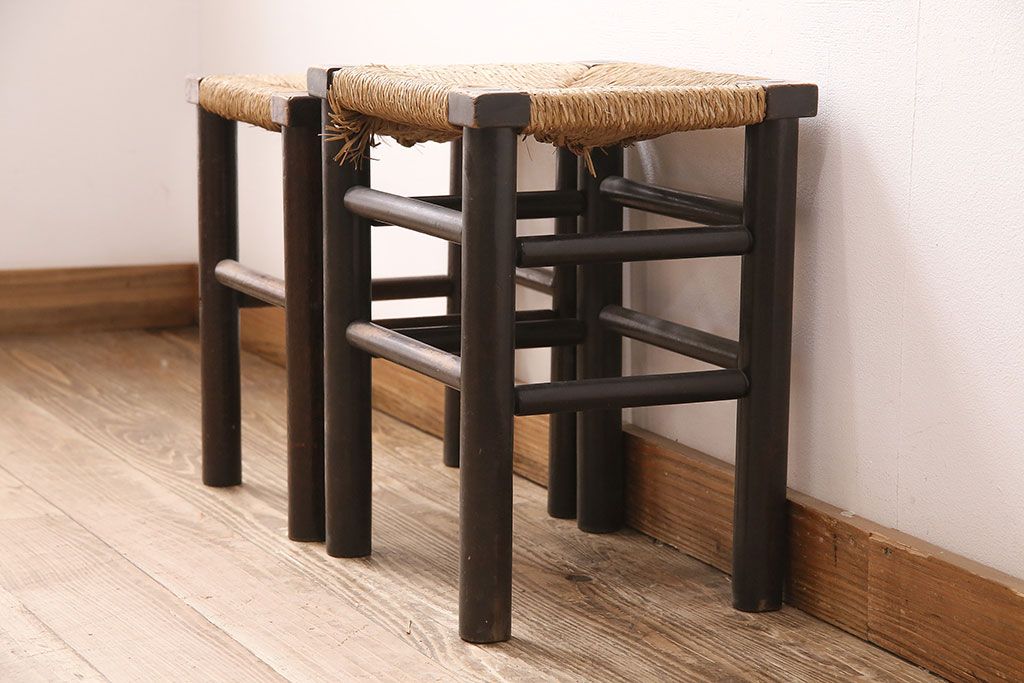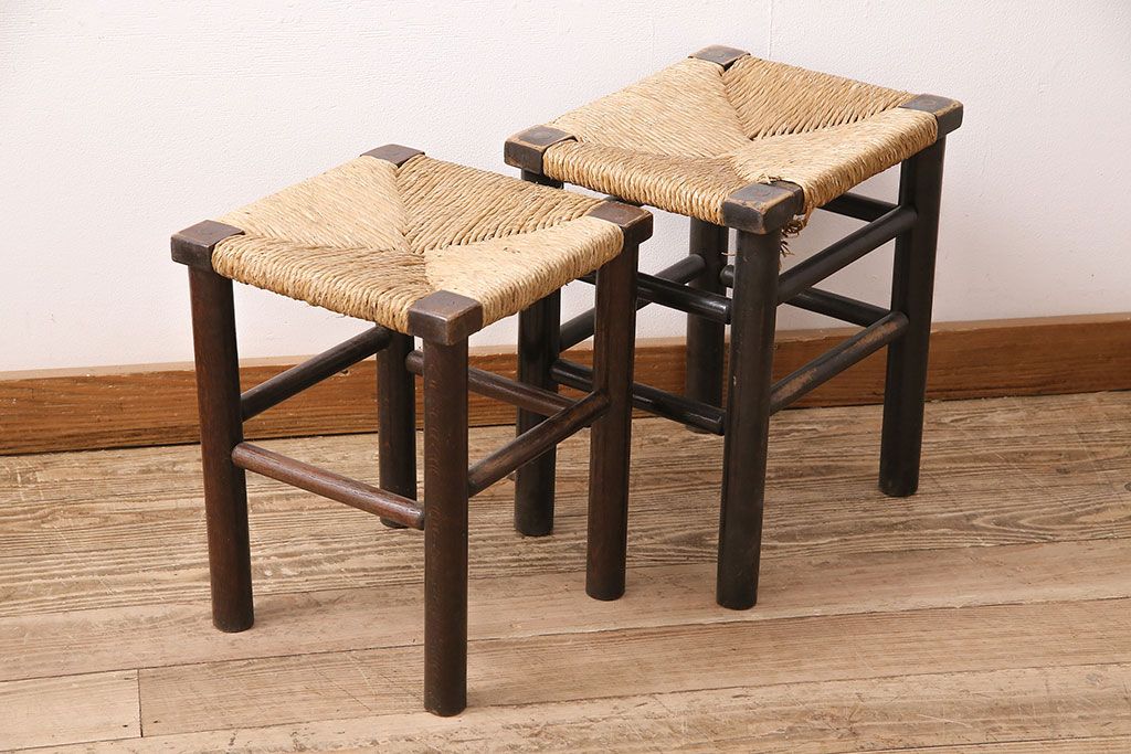 民芸家具 > ヴィンテージ 松本民芸家具 初期モデル ラッシ座面がおしゃれなスツール大小2脚セット(チェア、椅子、ビンテージ)(R-048708)