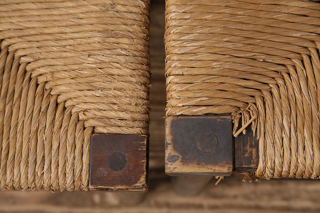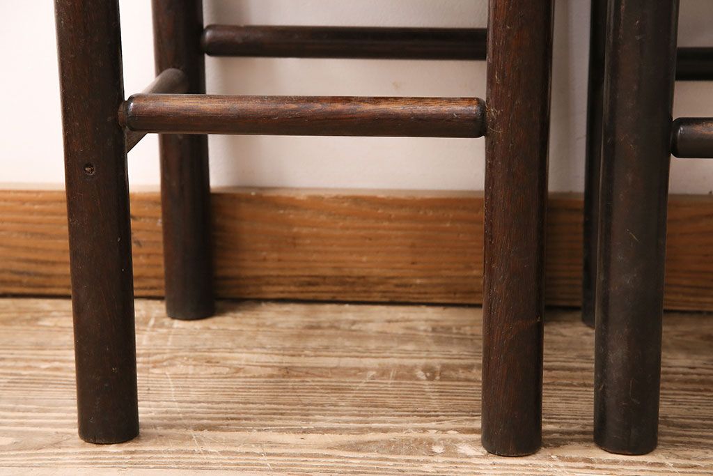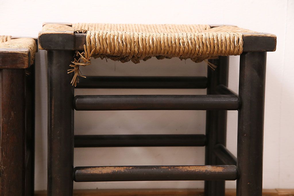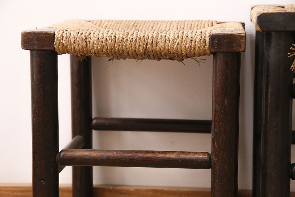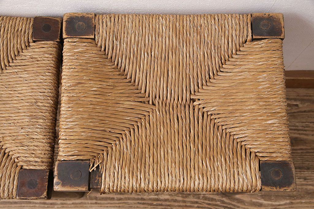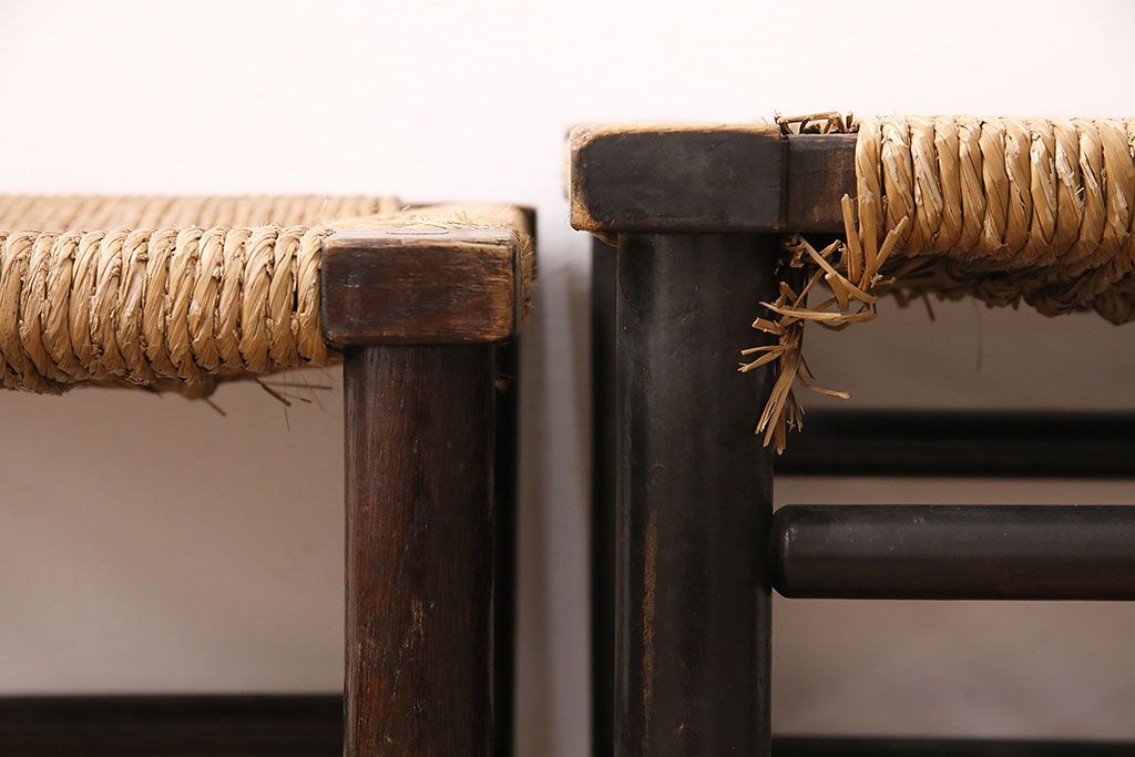 民芸家具 > ヴィンテージ 松本民芸家具 初期モデル ラッシ座面がおしゃれなスツール大小2脚セット(チェア、椅子、ビンテージ)(R-048708)