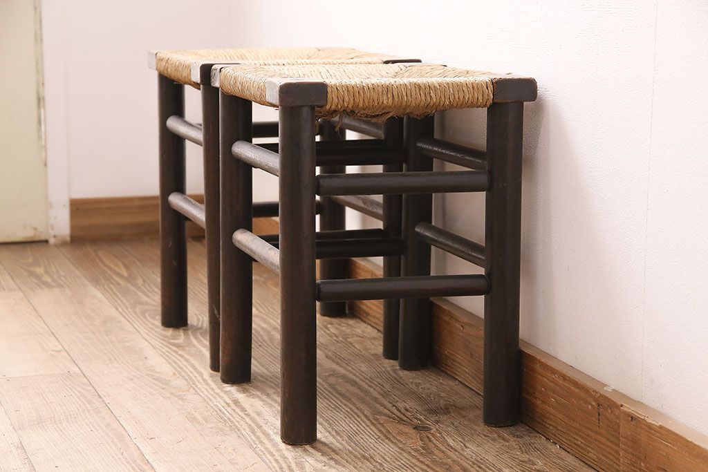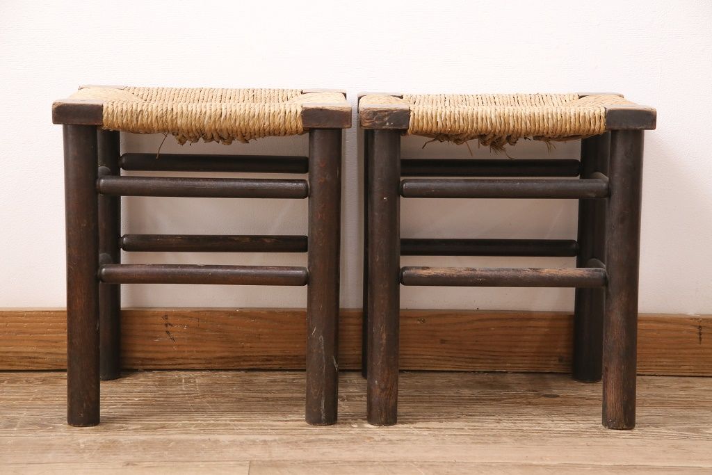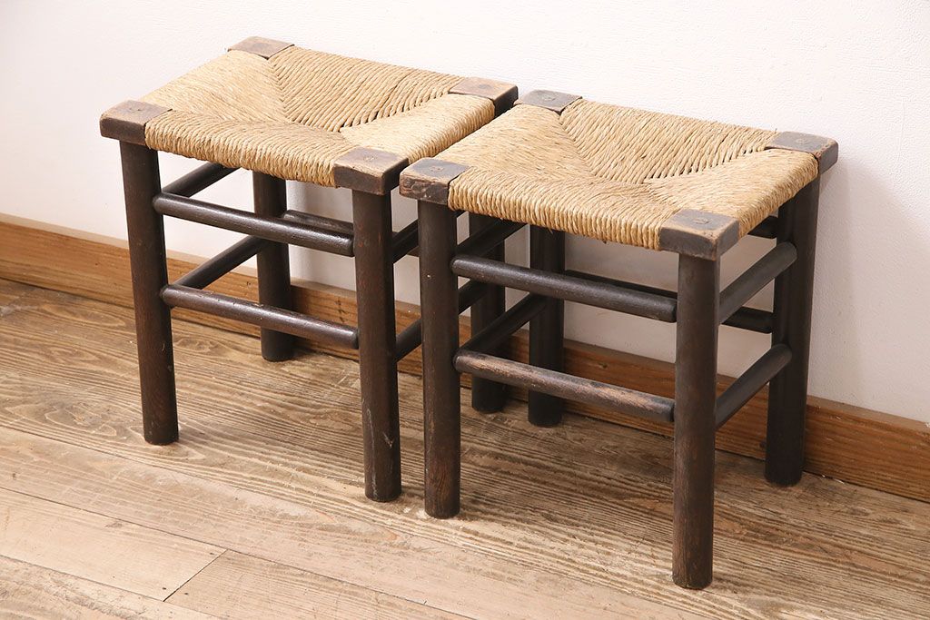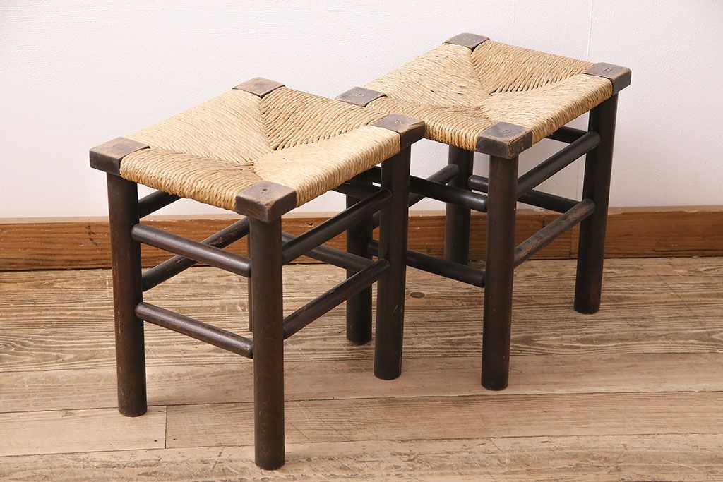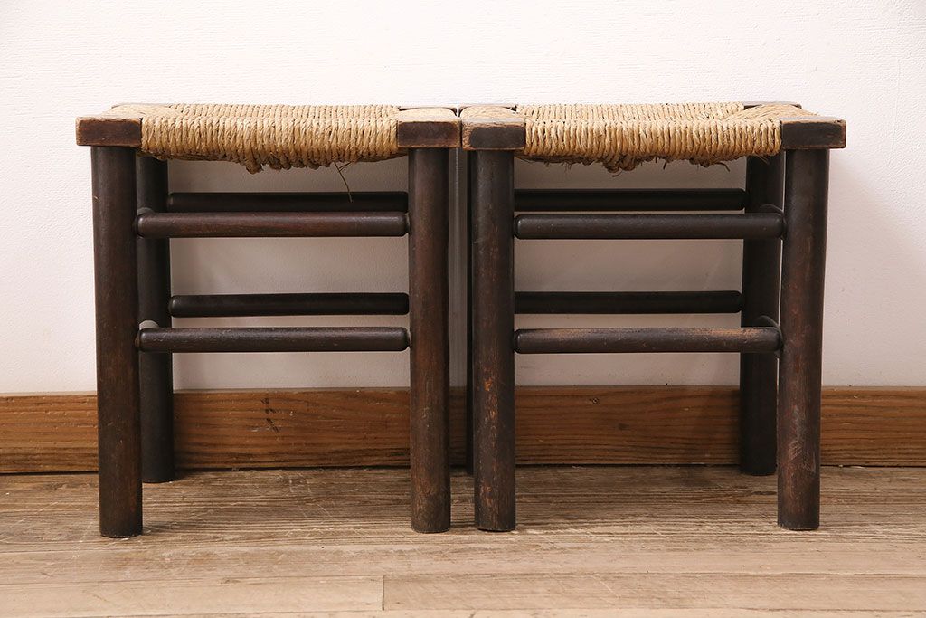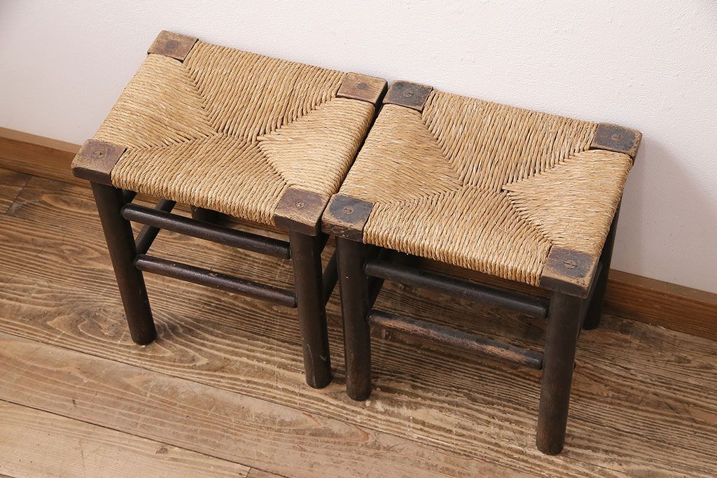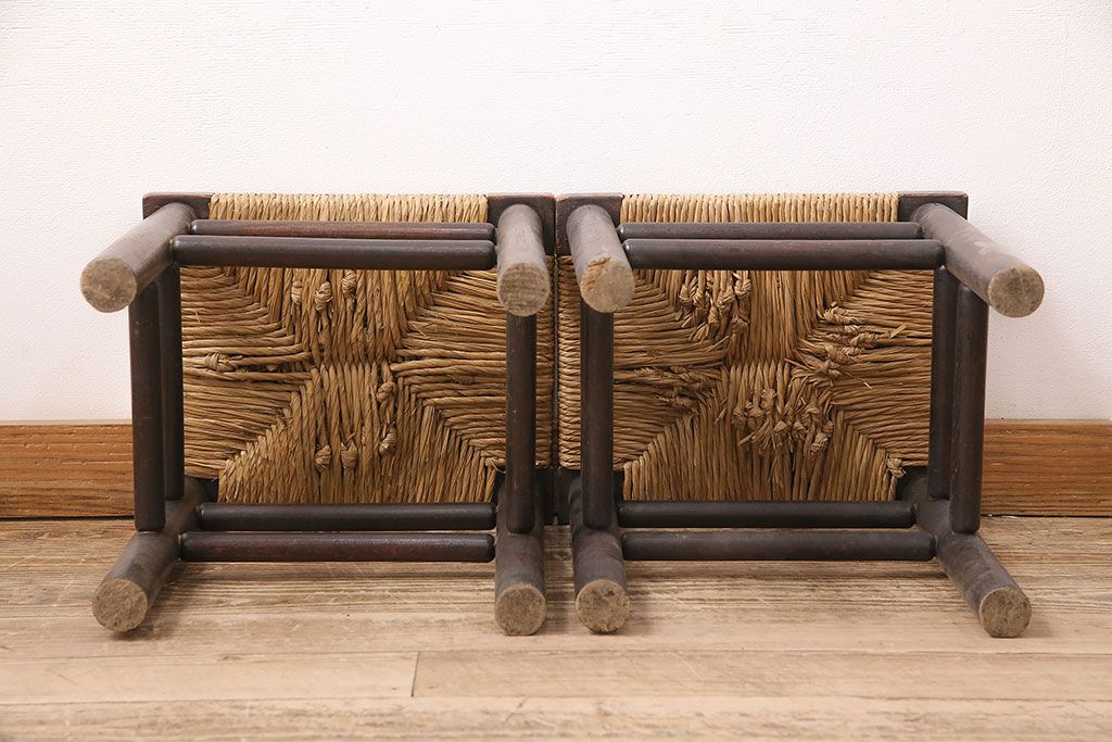 ヴィンテージ 松本民芸家具 ラッシ座面がおしゃれなスツール2脚セット(チェア、椅子)(R-048711)です。