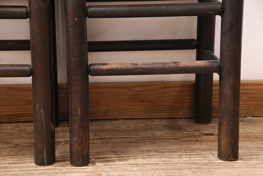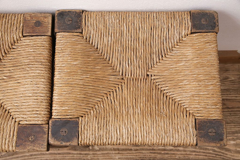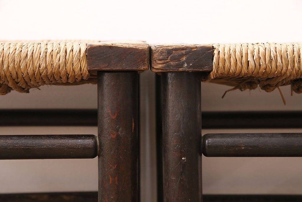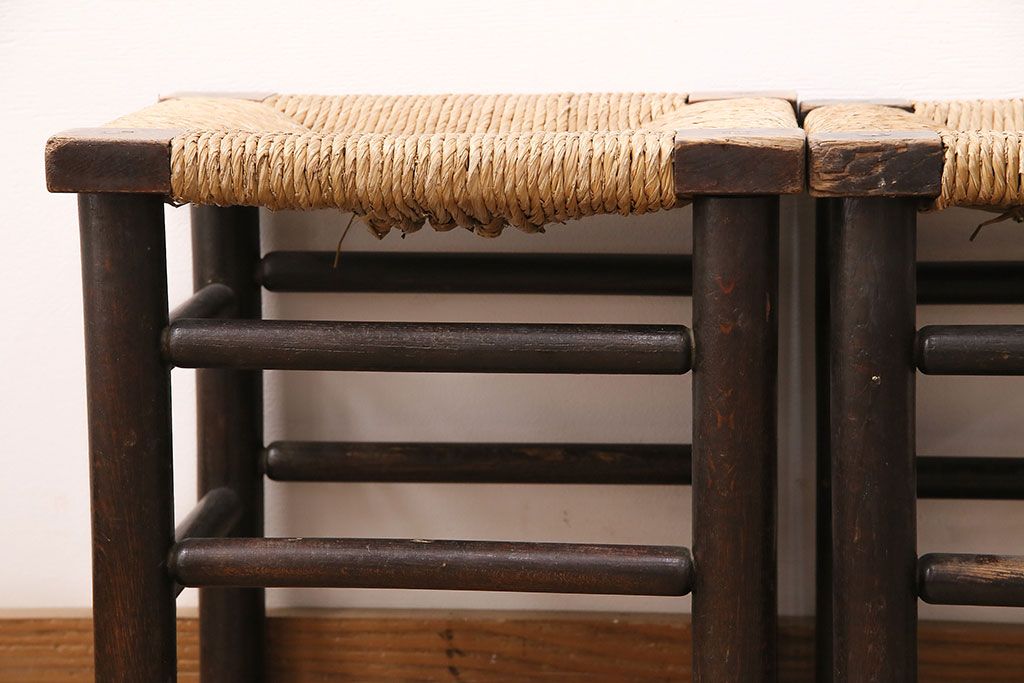民芸家具 > ヴィンテージ 松本民芸家具 ラッシ座面がおしゃれなスツール2脚セット(チェア、椅子、ビンテージ)(R-048711)