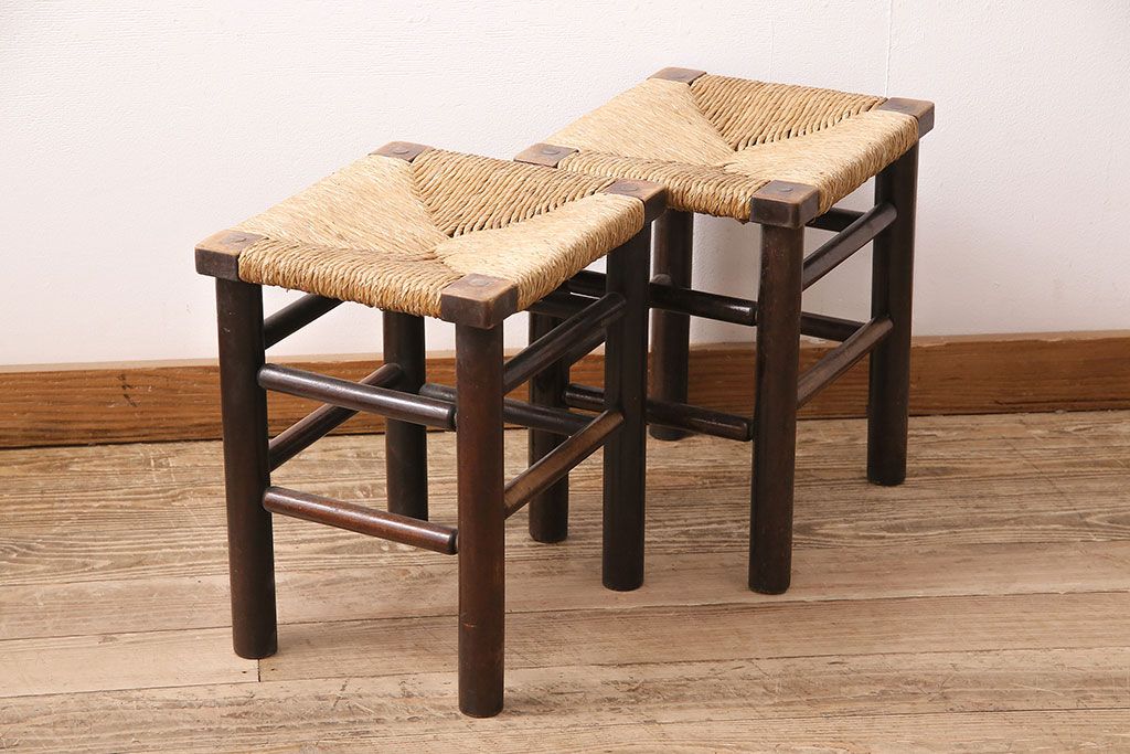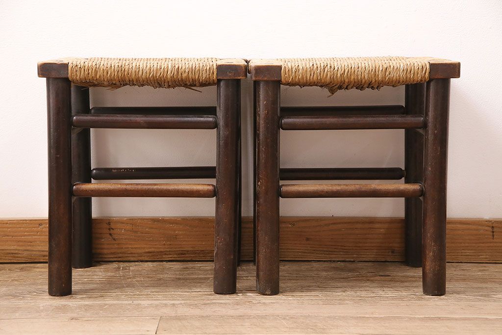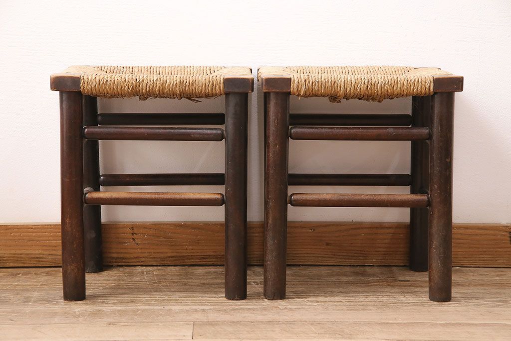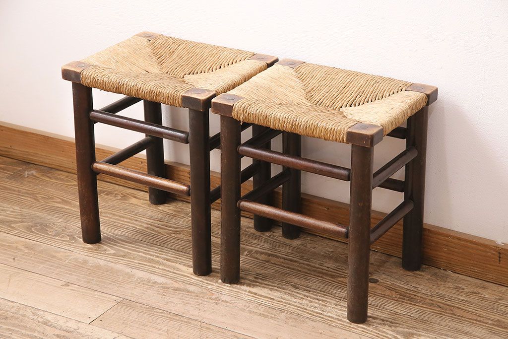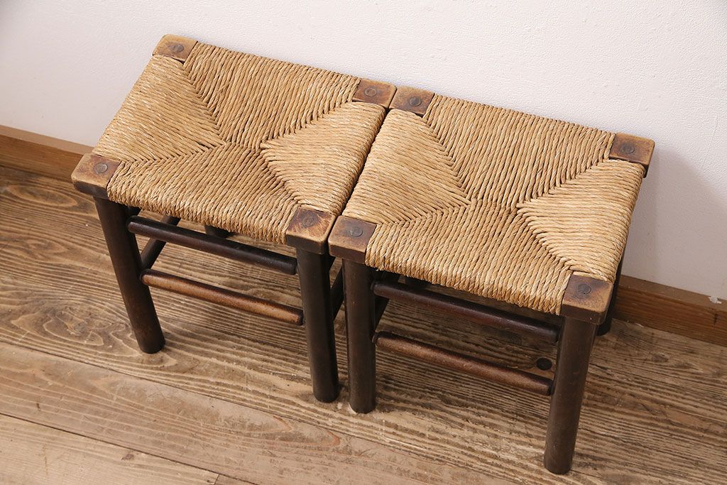 ヴィンテージ 松本民芸家具 ラッシ座面がおしゃれなスツール2脚セット(チェア、椅子)(R-048712)です。