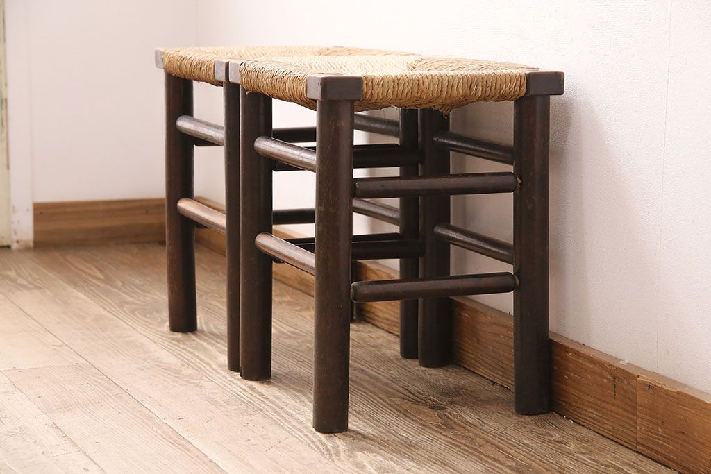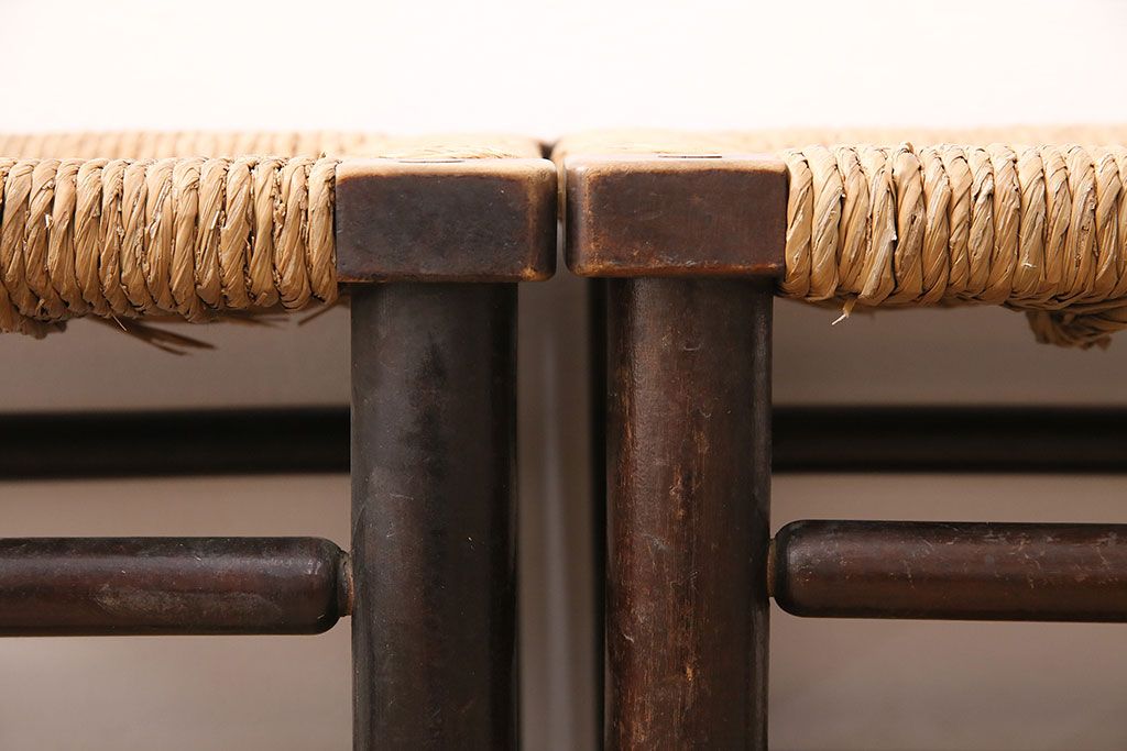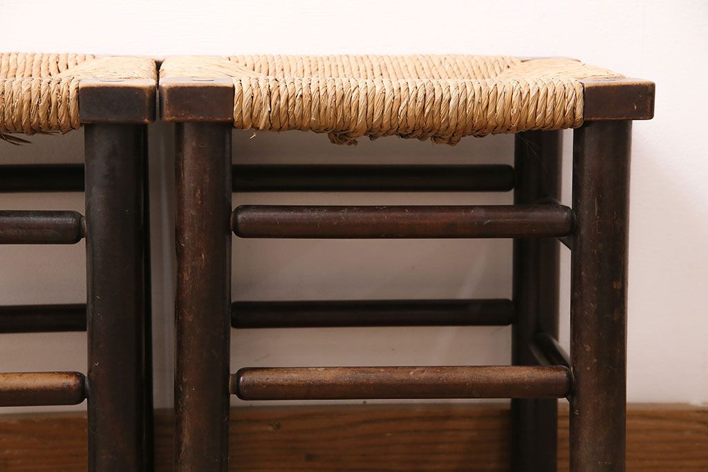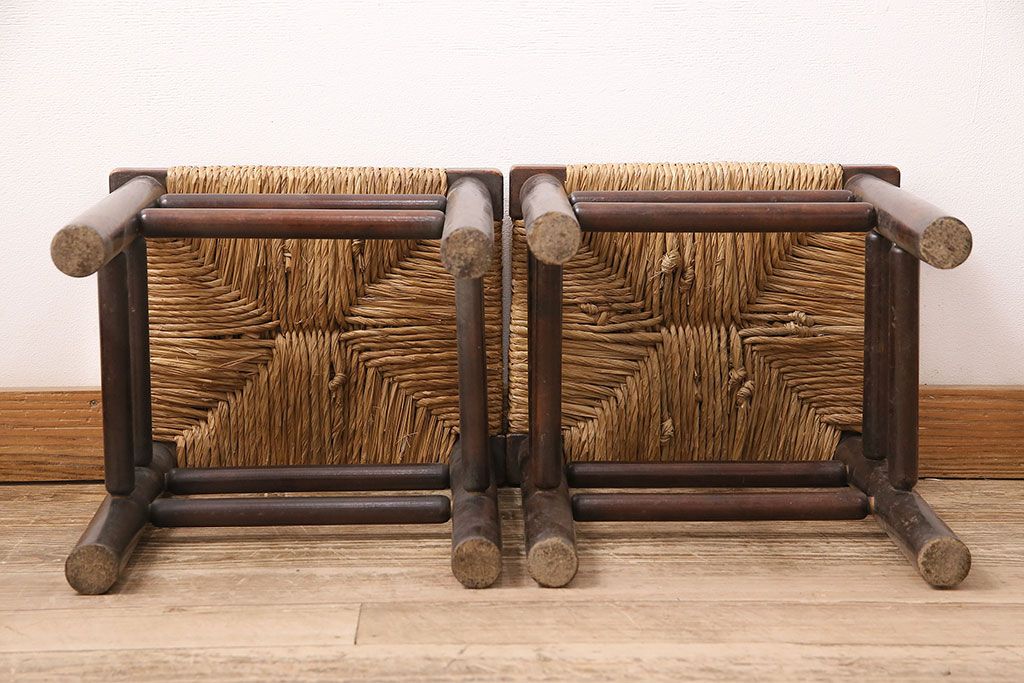 民芸家具 > ヴィンテージ 松本民芸家具 ラッシ座面がおしゃれなスツール2脚セット(チェア、椅子、ビンテージ)(R-048712)