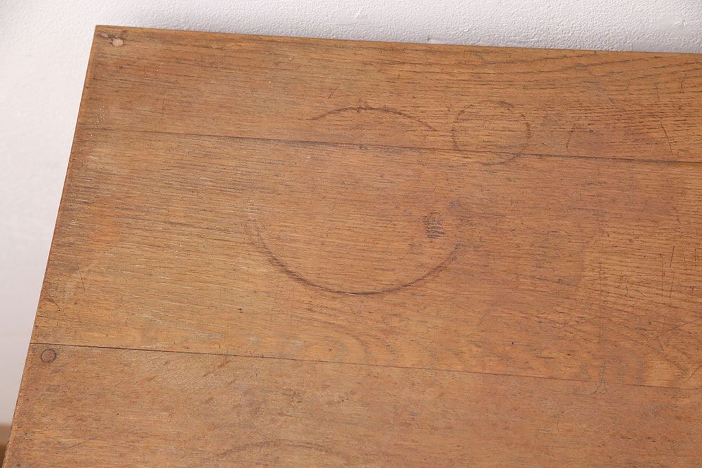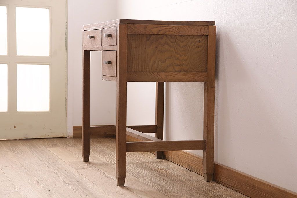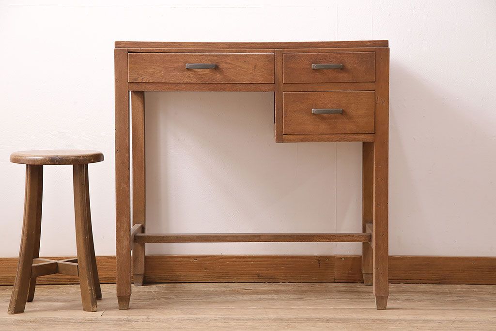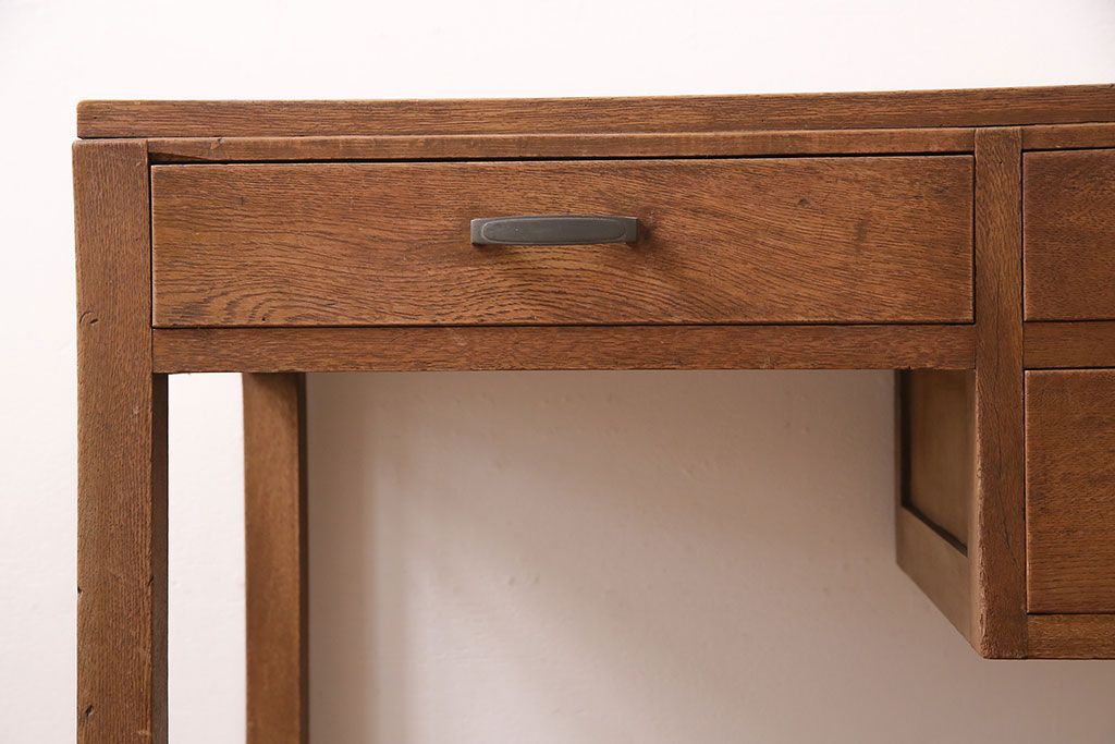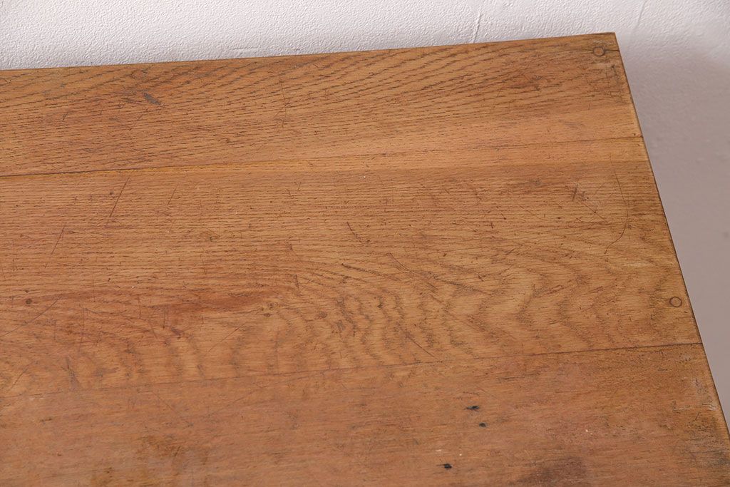 デスク> 片袖机・両袖机 > 和製アンティーク ナラ材 素朴な木の風合いとレトロな佇まいが魅力のデスク(学習机、在宅ワーク、在宅用子供机、在宅ワーク、在宅用片袖机、在宅ワーク、在宅用平机、在宅ワーク、在宅用ワークデスク)(R-048720)