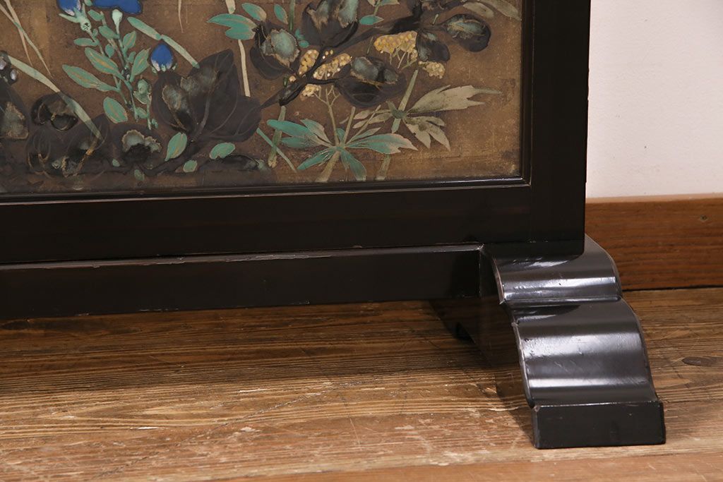 大正昭和初期の衝立の見た目を変えずに綺麗にリペア!木部のクリーニング、研磨。(パーテーション、つい立て)