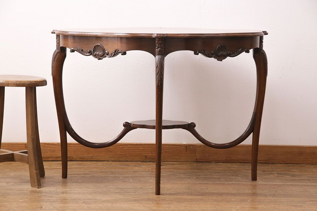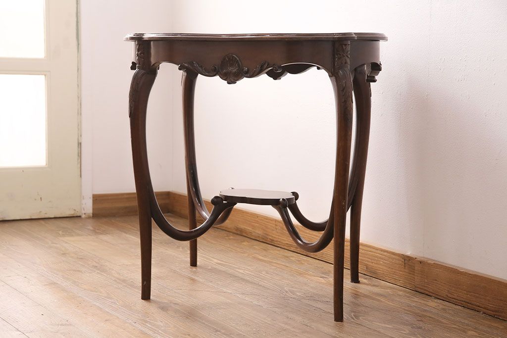 イギリスアンティーク 高級品 エレガントな佇まいが気品漂うマホガニー材製オケージョナルテーブル(サイドテーブル、コーヒーテーブル)(R-049367)です。