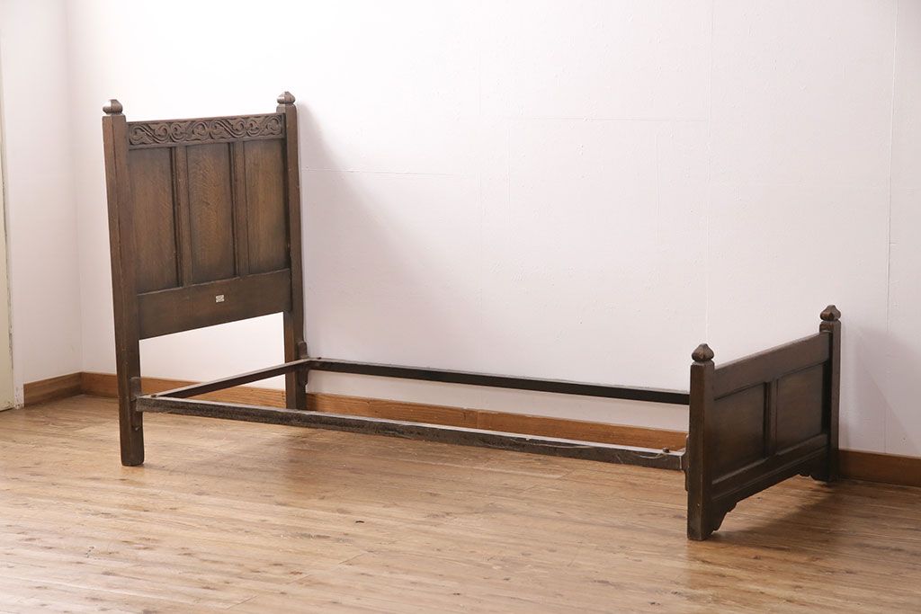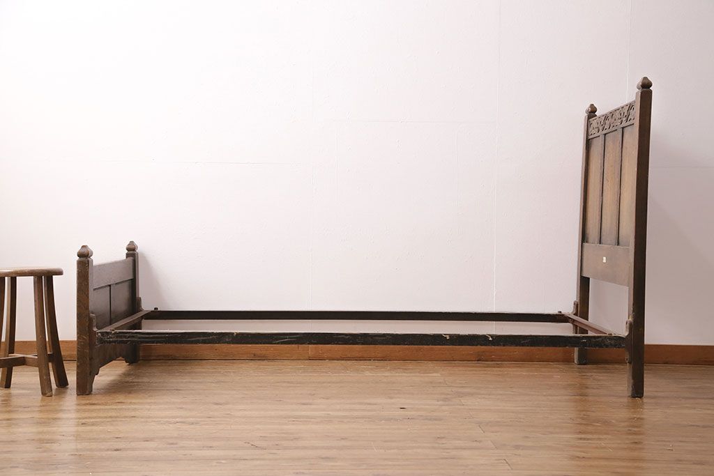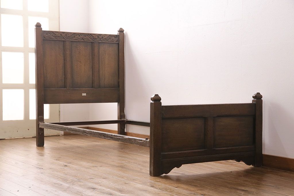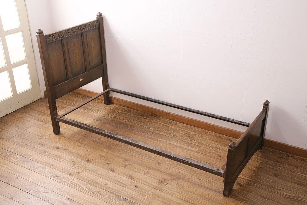 アンティーク家具 イギリス オーク材 使い込まれた風合いとエレガントな雰囲気を高める彫刻が魅力のベッドフレーム(シングル)(R-049376)