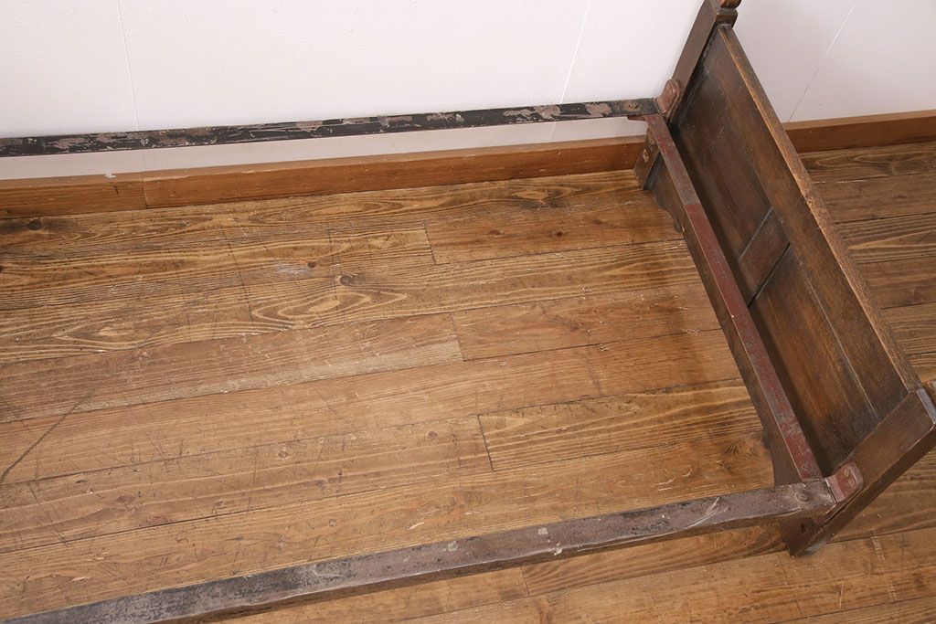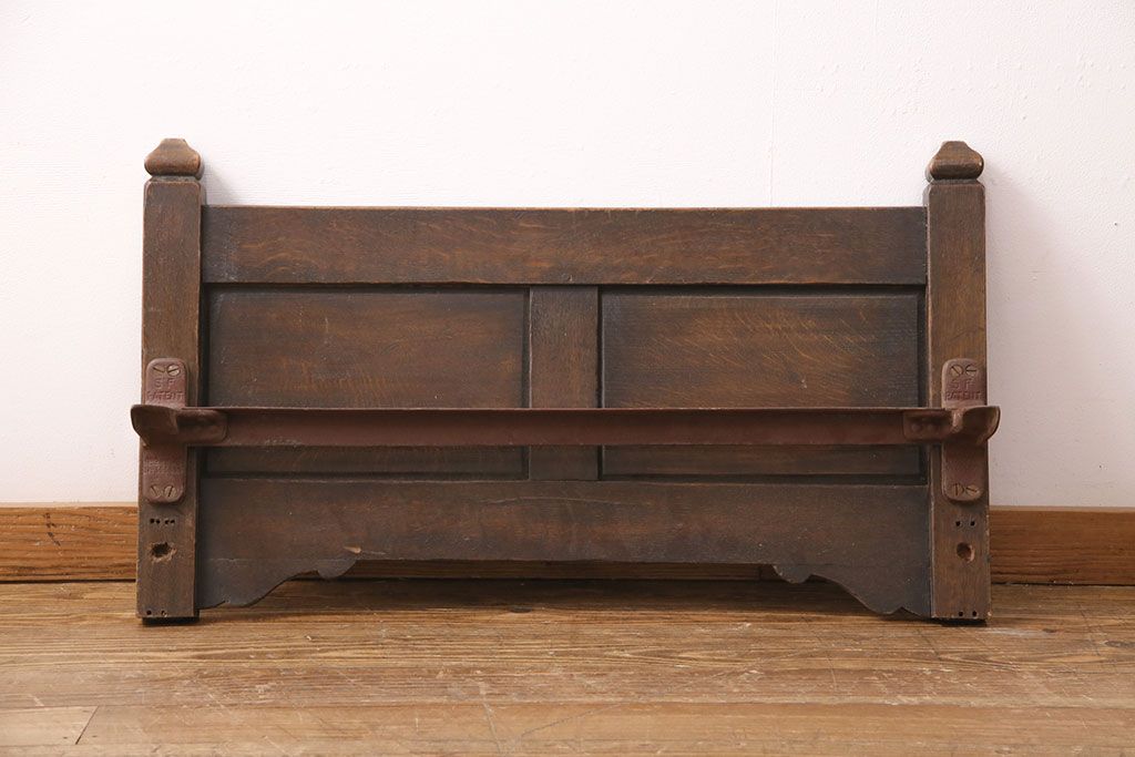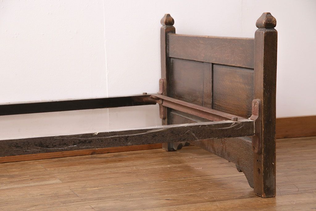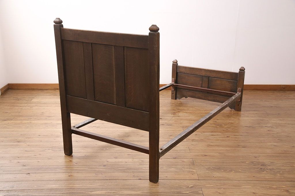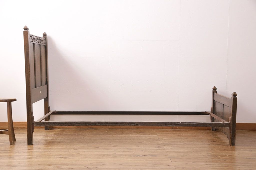 アンティーク家具 イギリス オーク材 使い込まれた風合いとエレガントな雰囲気を高める彫刻が魅力のベッドフレーム(シングル)(R-049376)