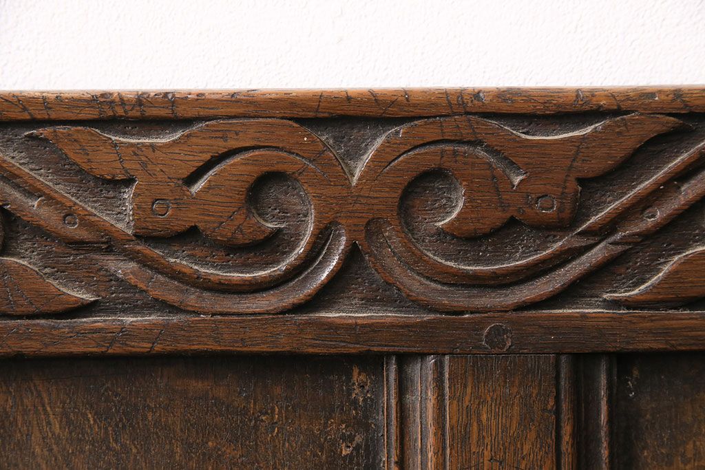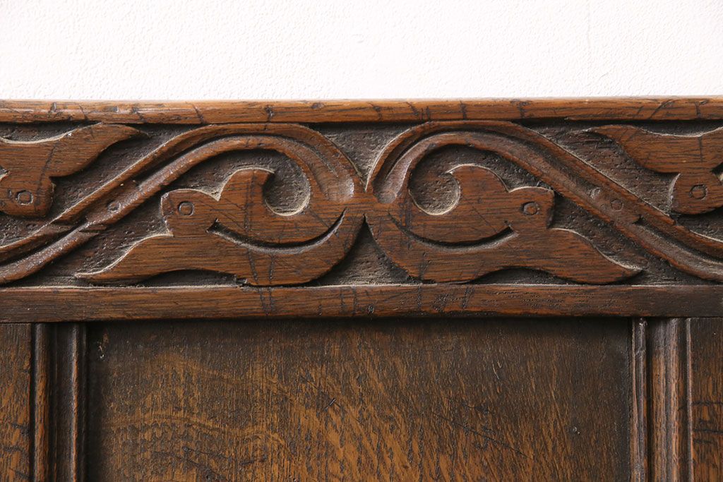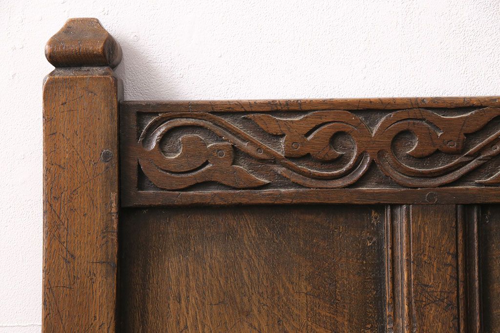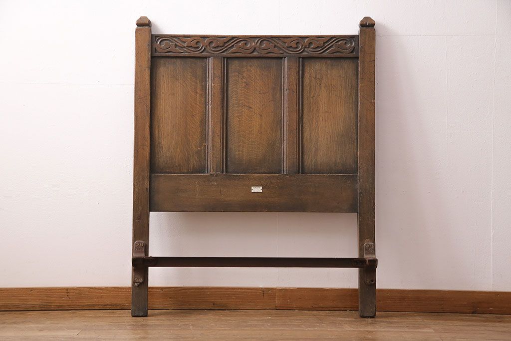 ベッド > アンティーク家具 イギリス オーク材 使い込まれた風合いとエレガントな雰囲気を高める彫刻が魅力のベッドフレーム(シングル)(R-049376)