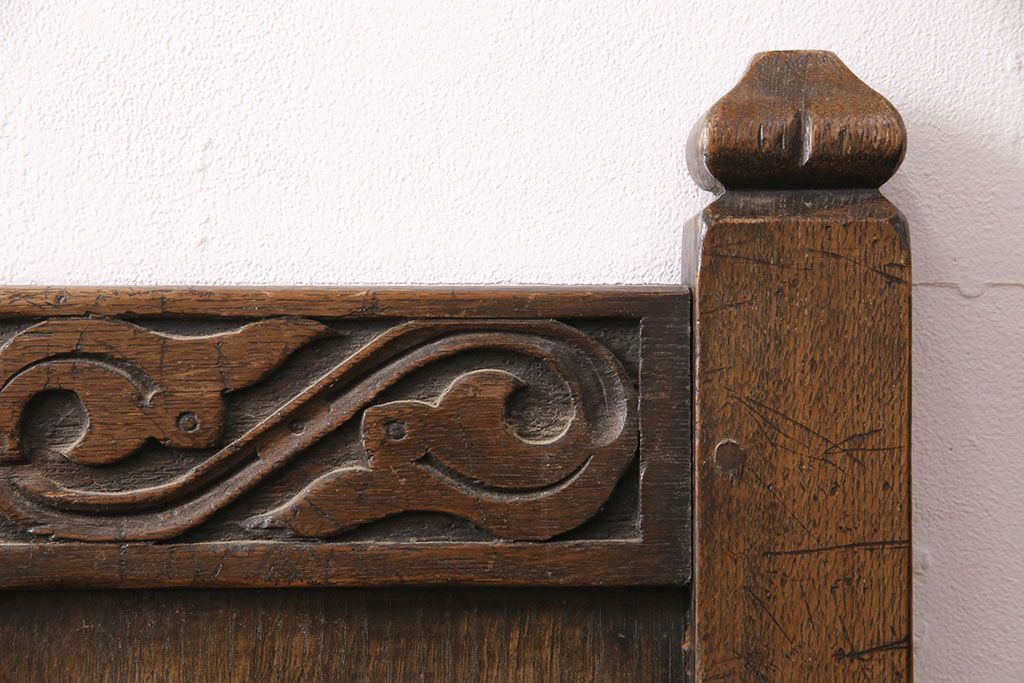 ベッド> シングル > アンティーク家具 イギリス オーク材 使い込まれた風合いとエレガントな雰囲気を高める彫刻が魅力のベッドフレーム(シングル)(R-049376)