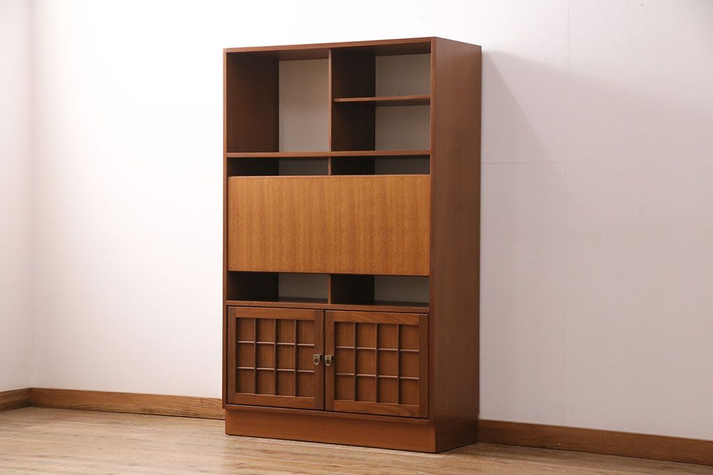 ヴィンテージ家具 イギリス チーク材 木目の美しさとスタイリッシュなデザインが魅力のビューローキャビネット(ライティングビューロー、収納棚、戸棚)(R-049734)です。
