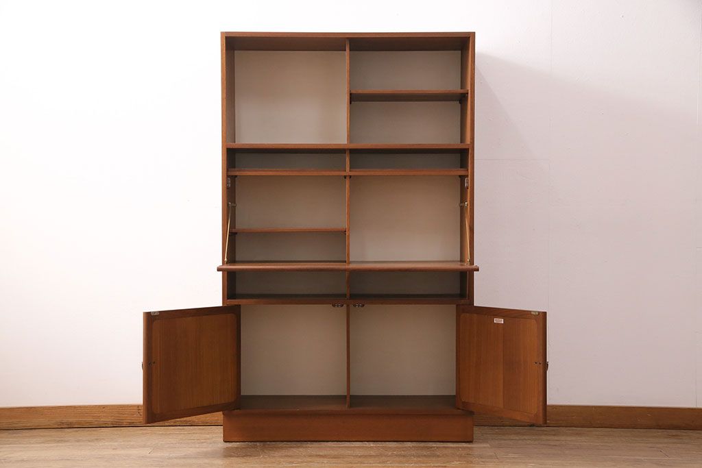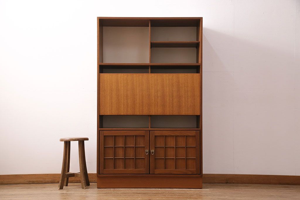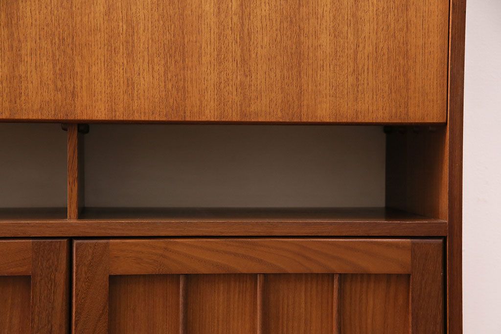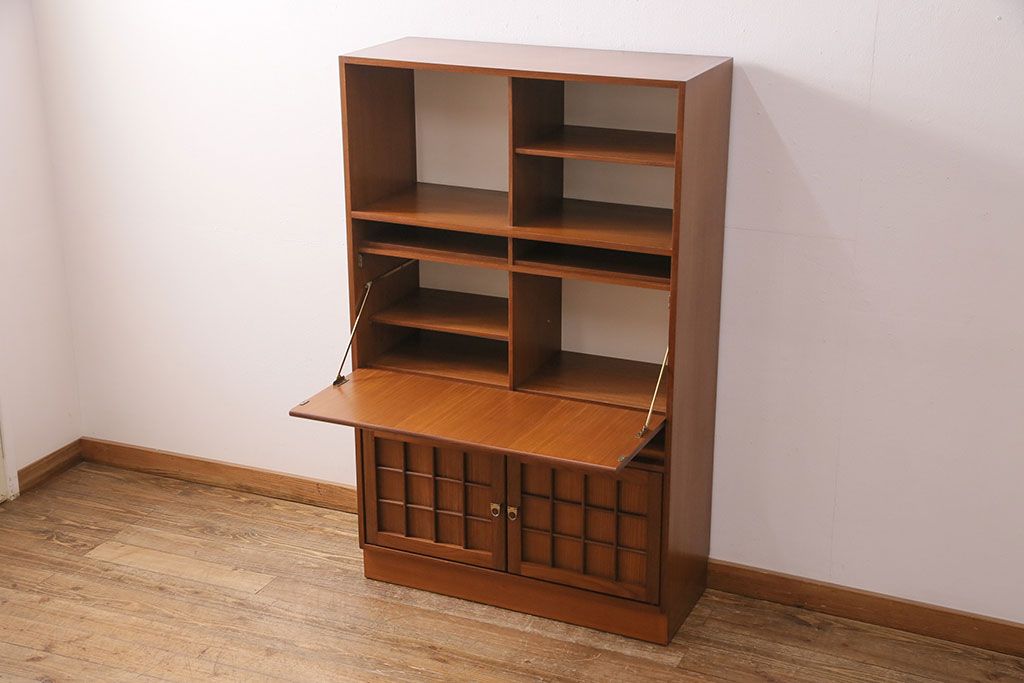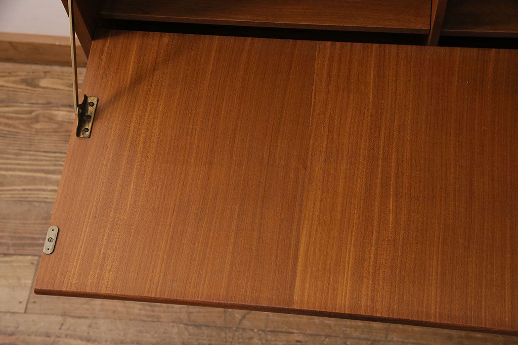 ヴィンテージ家具 イギリス チーク材 木目の美しさとスタイリッシュなデザインが魅力のビューローキャビネット(ライティングビューロー、収納棚、戸棚、ビンテージ)(R-049734)