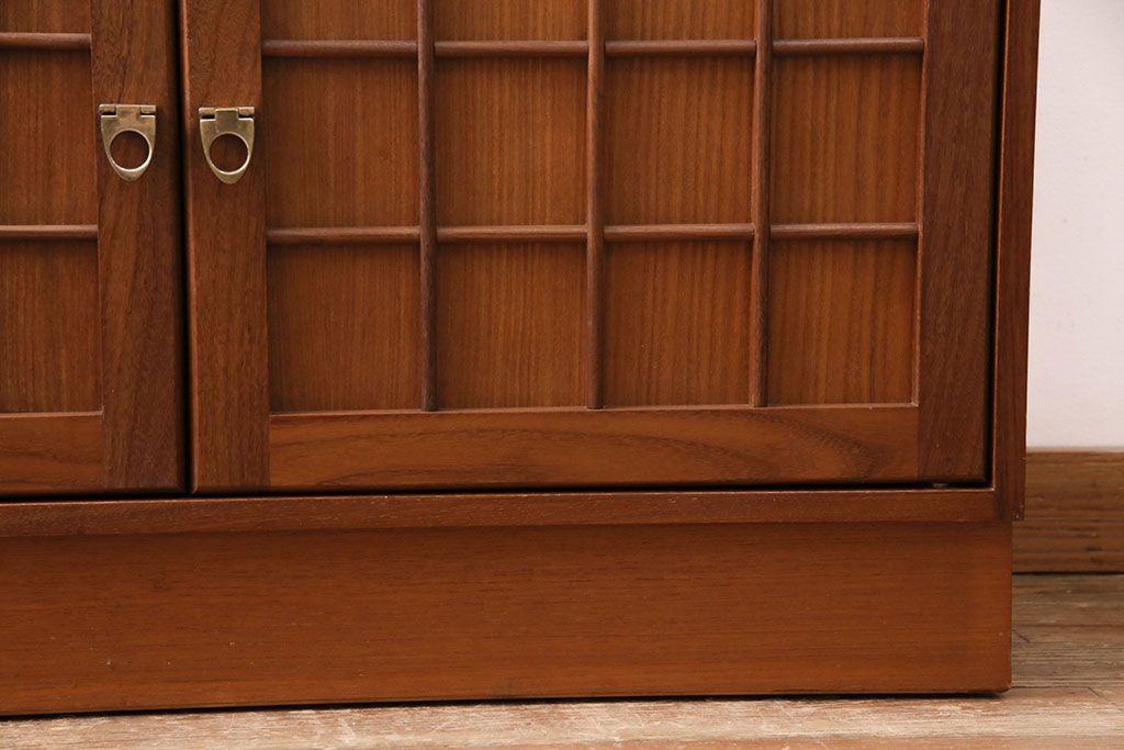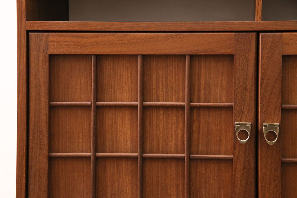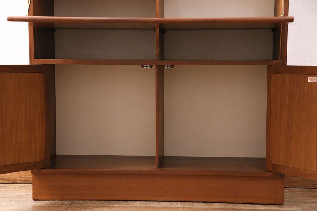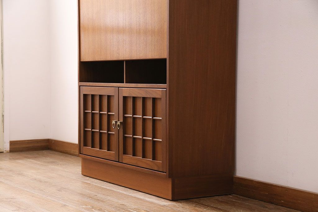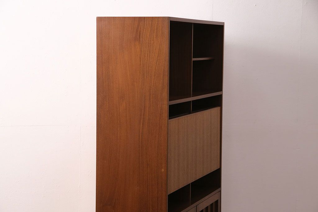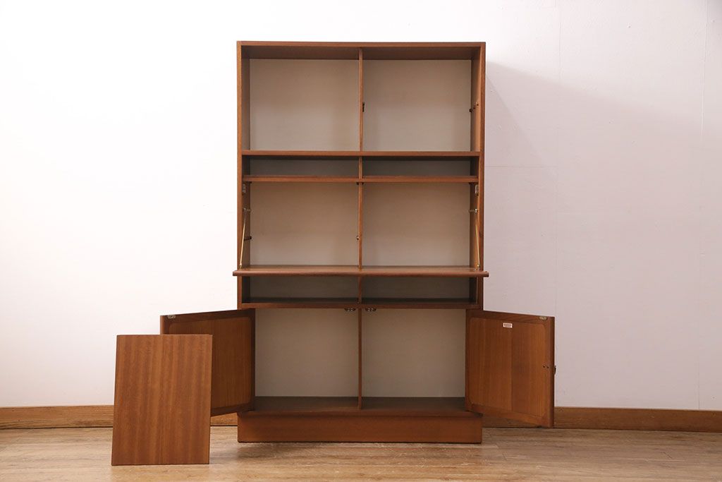 ヴィンテージ家具 イギリス チーク材 木目の美しさとスタイリッシュなデザインが魅力のビューローキャビネット(ライティングビューロー、収納棚、戸棚、ビンテージ)(R-049734)