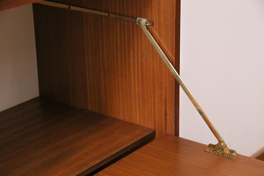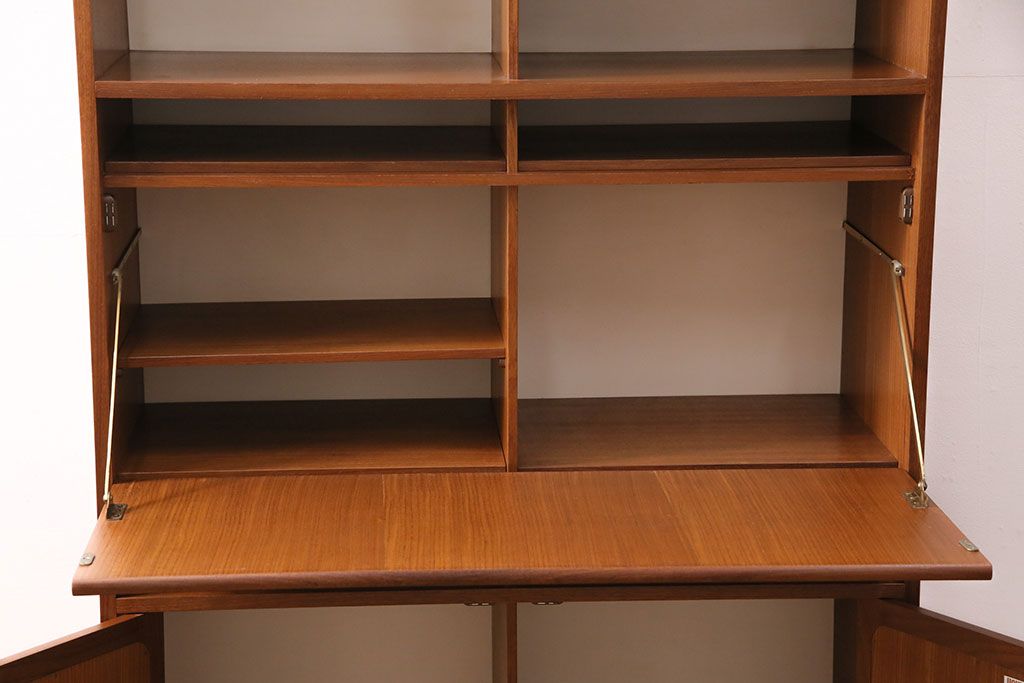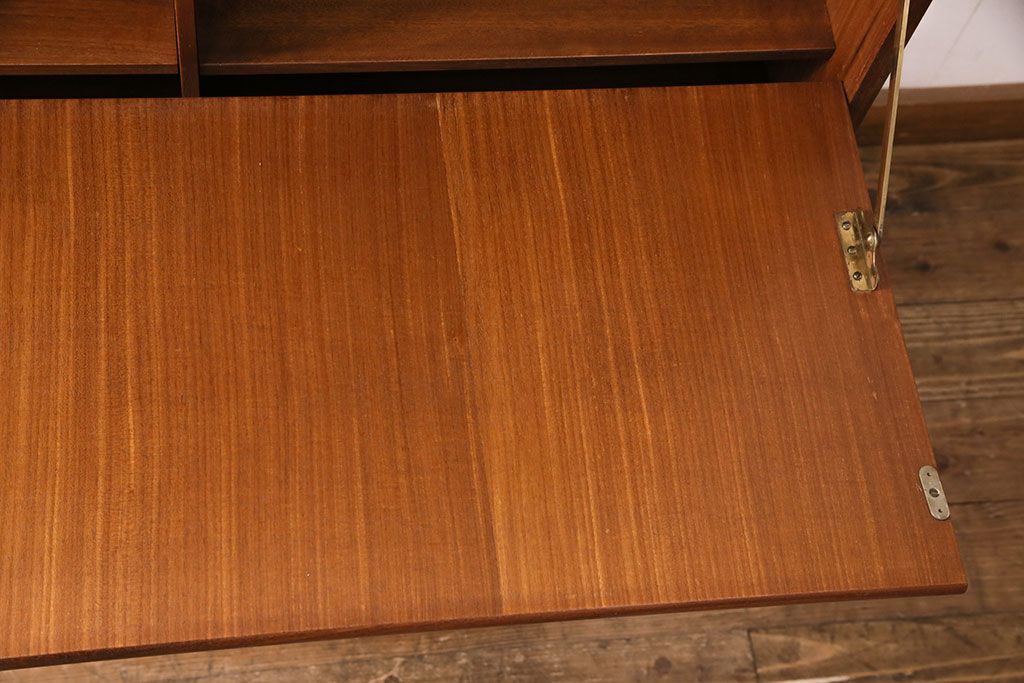デスク> ライティングビューロー・簿記机 > ヴィンテージ家具 イギリス チーク材 木目の美しさとスタイリッシュなデザインが魅力のビューローキャビネット(ライティングビューロー、収納棚、戸棚、ビンテージ)(R-049734)