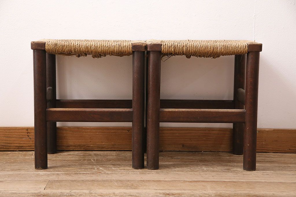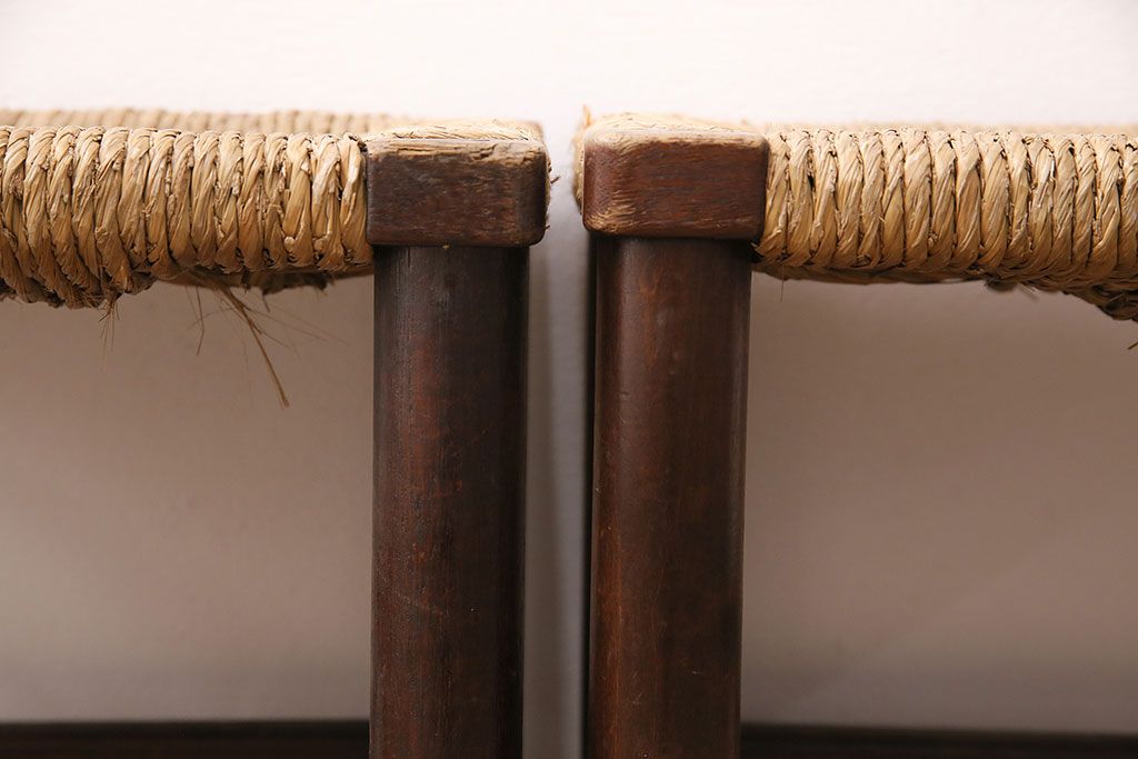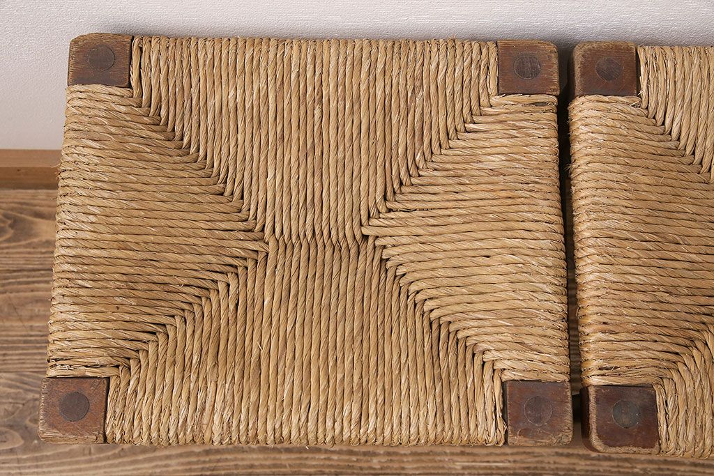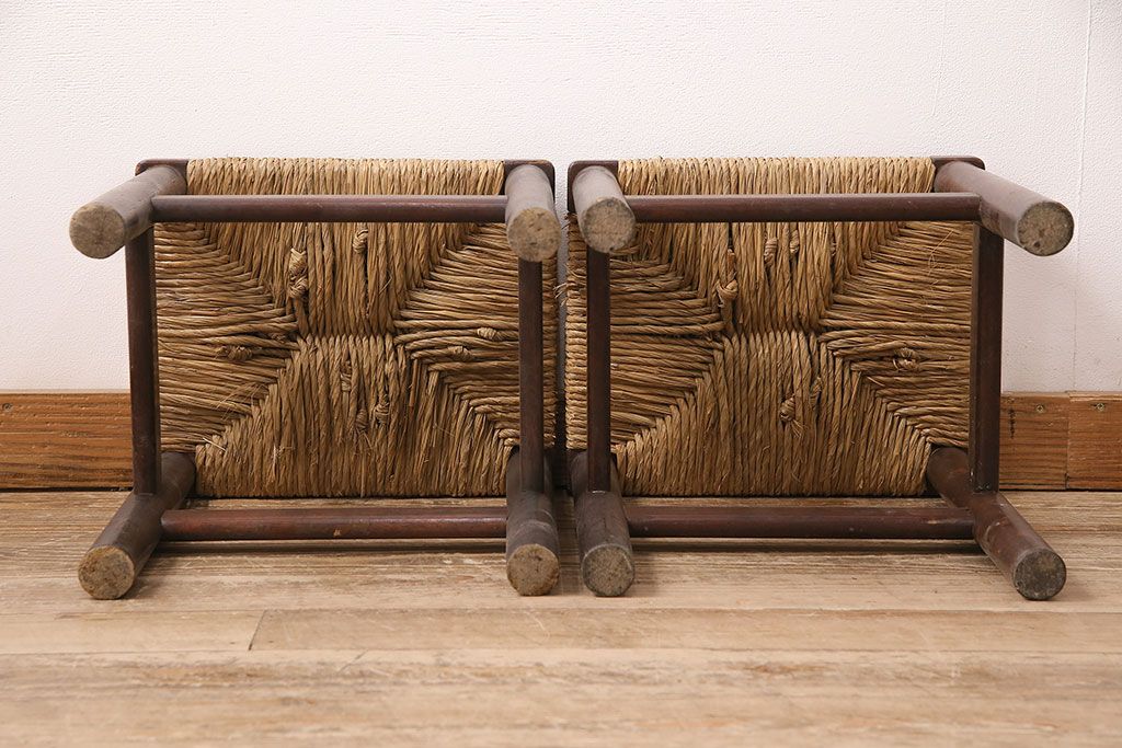 民芸家具 > 【簡易リペア限定品】ヴィンテージ家具 松本民芸家具 初期モデル ラッシ座面がおしゃれなスツール2脚セット(チェア、椅子、ビンテージ、イス、バラ売り可能)(R-048685)