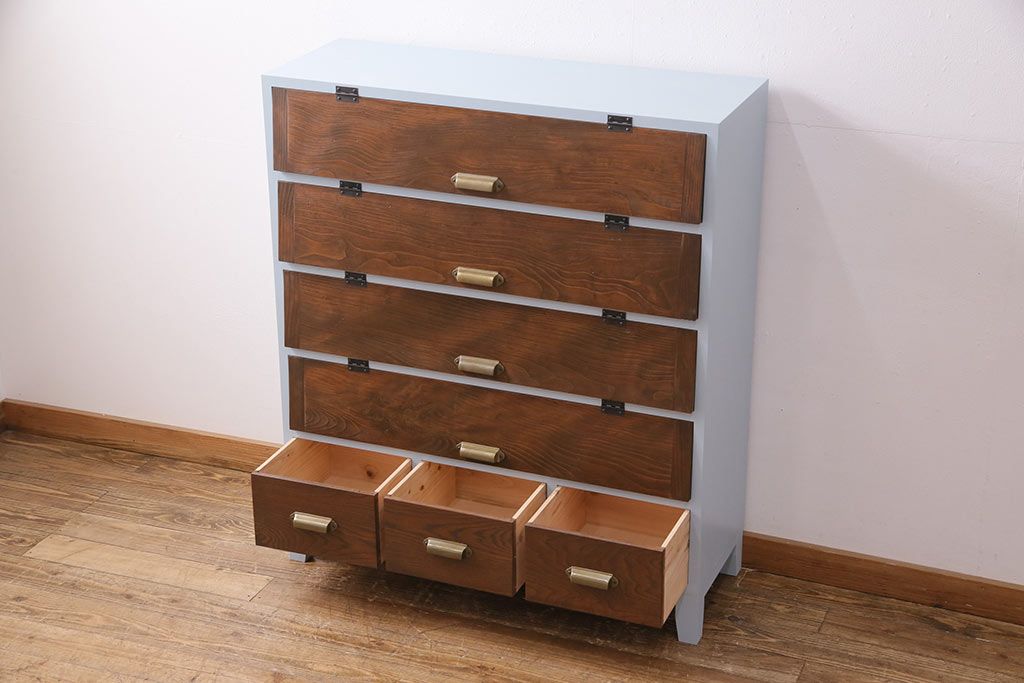◆色味:(本体)くすんだ水色にてペイント/(前板)水性着色・茶色