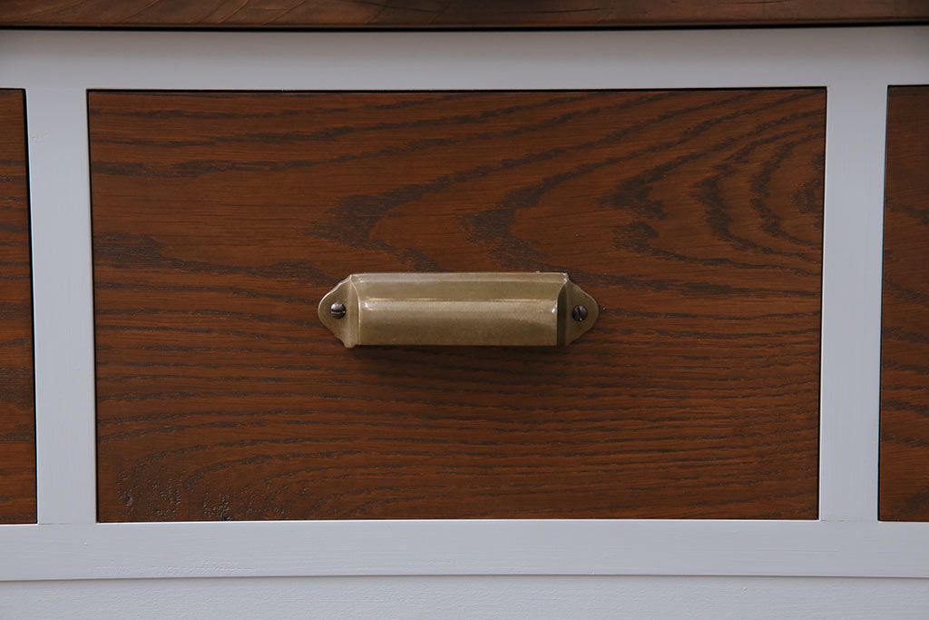 上より4段はパタパタ扉の収納棚、最下段に3杯の引き出し