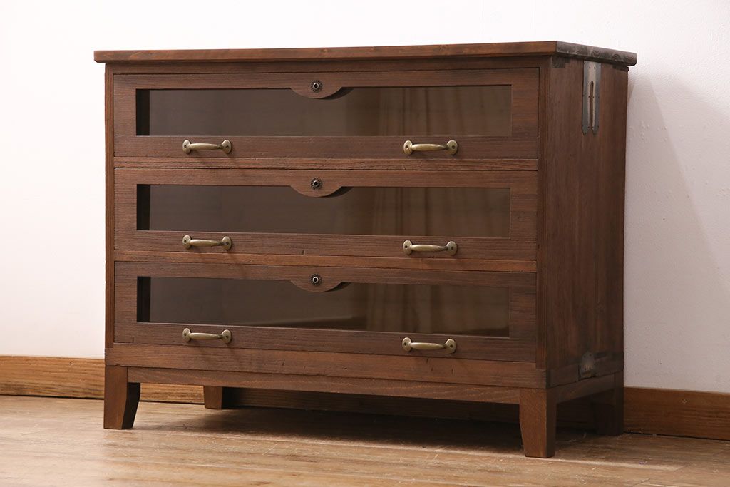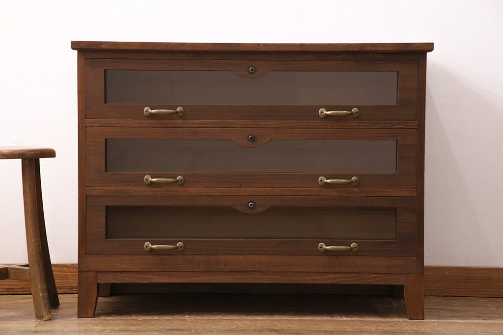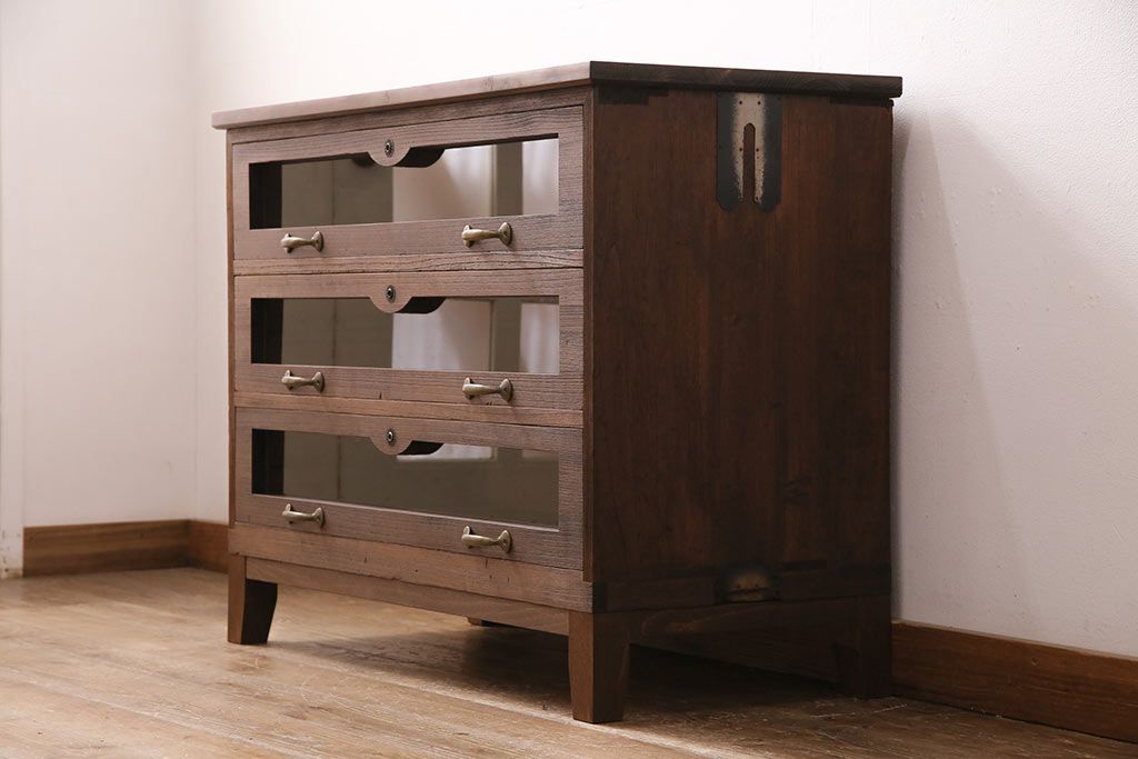 和箪笥 > 和製アンティーク 桐箪笥リメイク 前面ガラス製 上品な佇まいが魅力的なリビングボード(引き出し、チェスト、シャツケース、テレビ台、桐たんす)(R-049611)