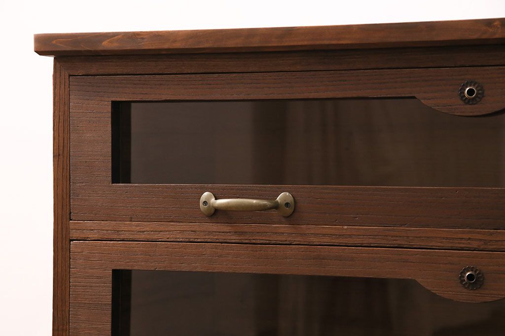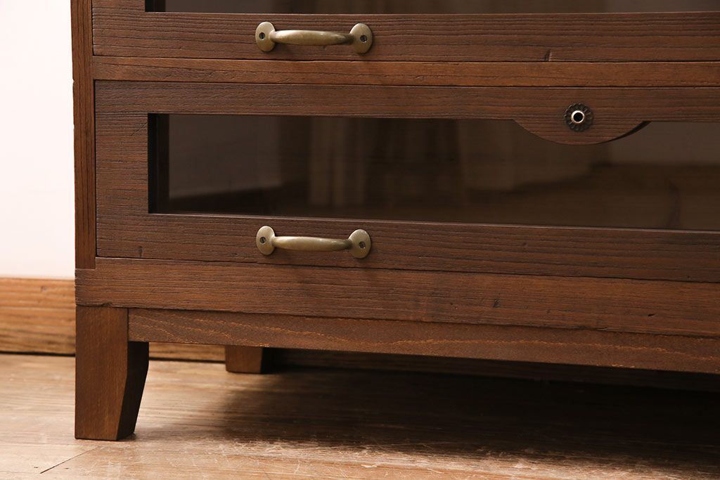 和製アンティーク 桐箪笥リメイク 前面ガラス製 上品な佇まいが魅力的なリビングボード(引き出し、チェスト、シャツケース、テレビ台、桐たんす)(R-049611)