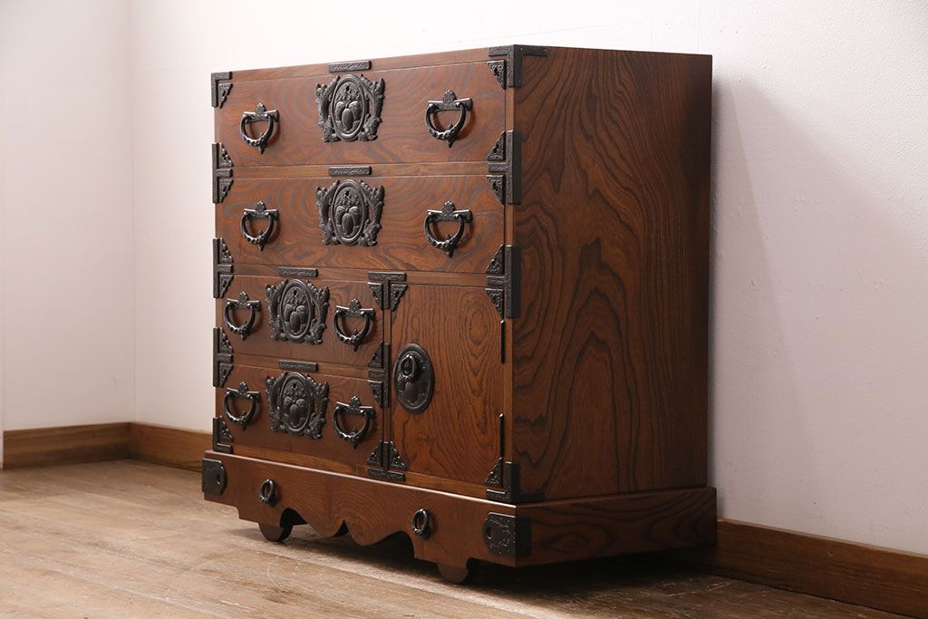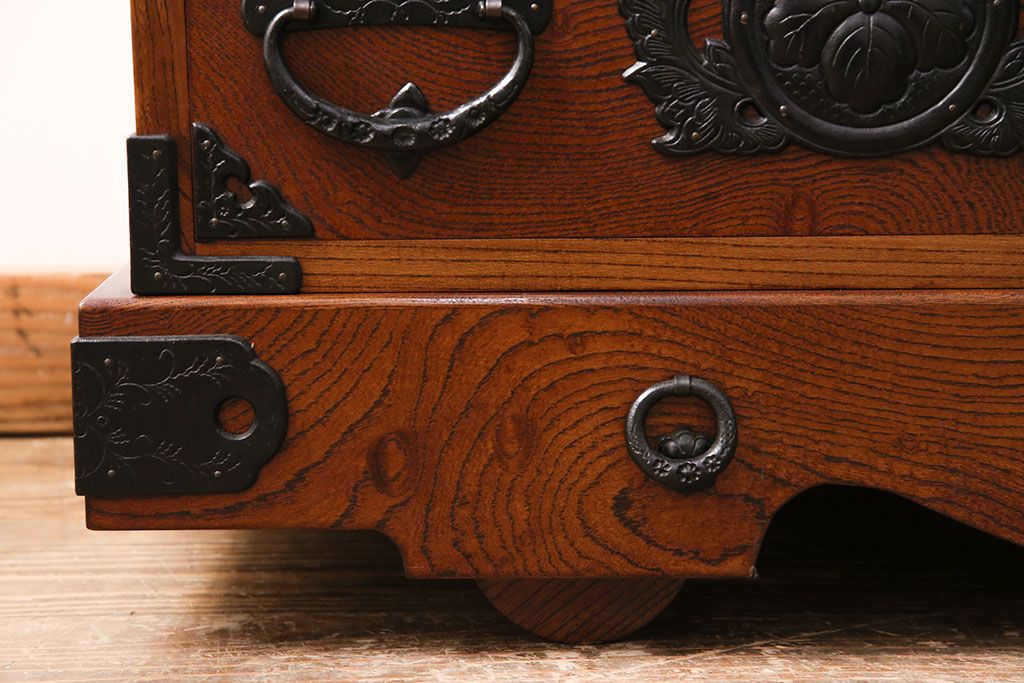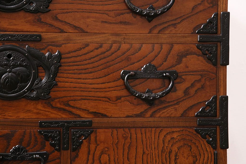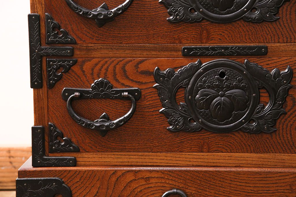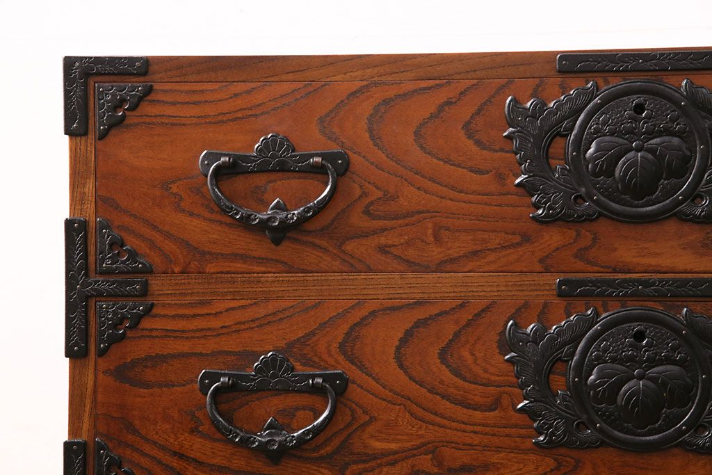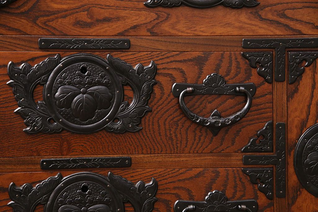 ラフジュ工房> 和箪笥> 衣装箪笥 > 中古 伝統民芸 岩谷堂箪笥 個性溢れる伝統的なデザインが魅力的な車箪笥(衣装箪笥、和タンス、引き出し)(R-049794)