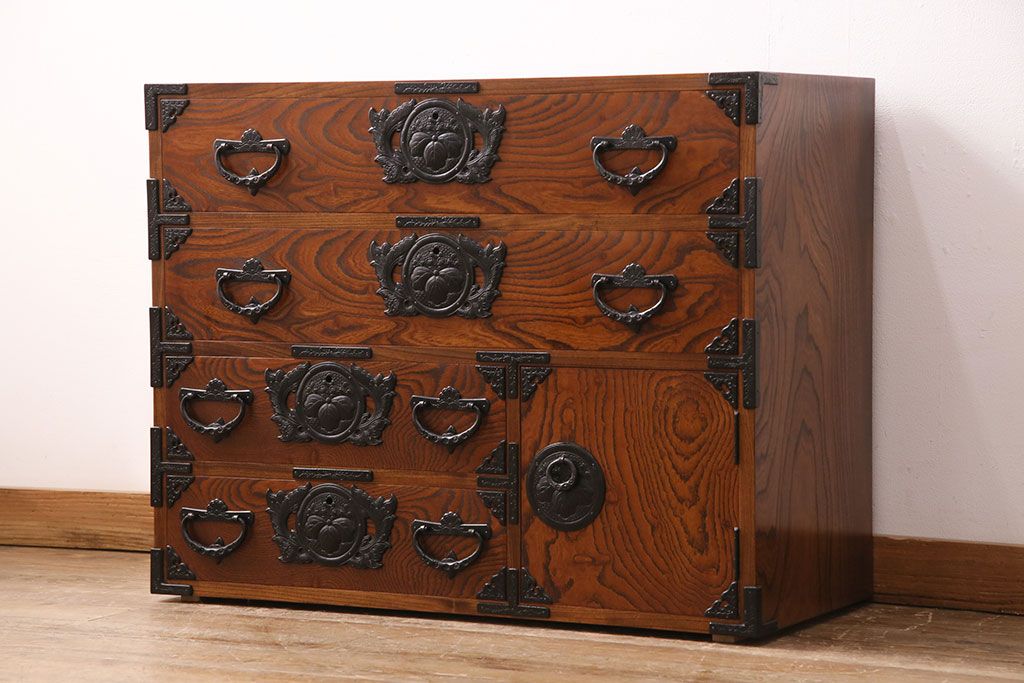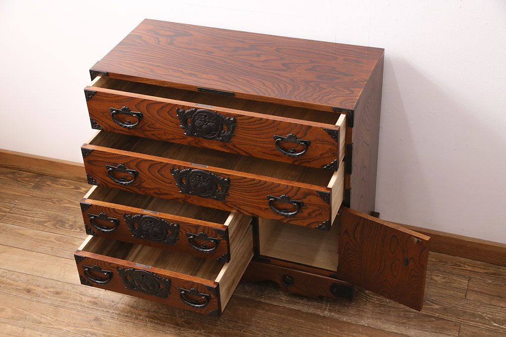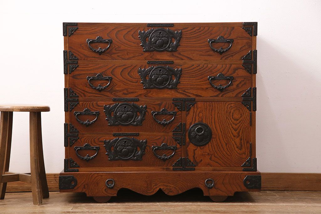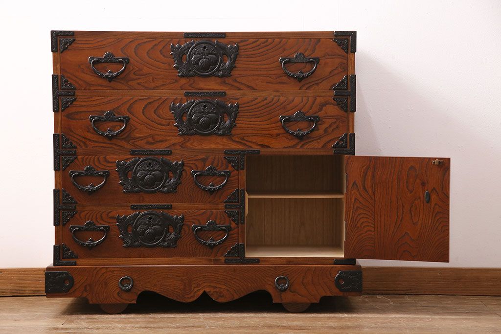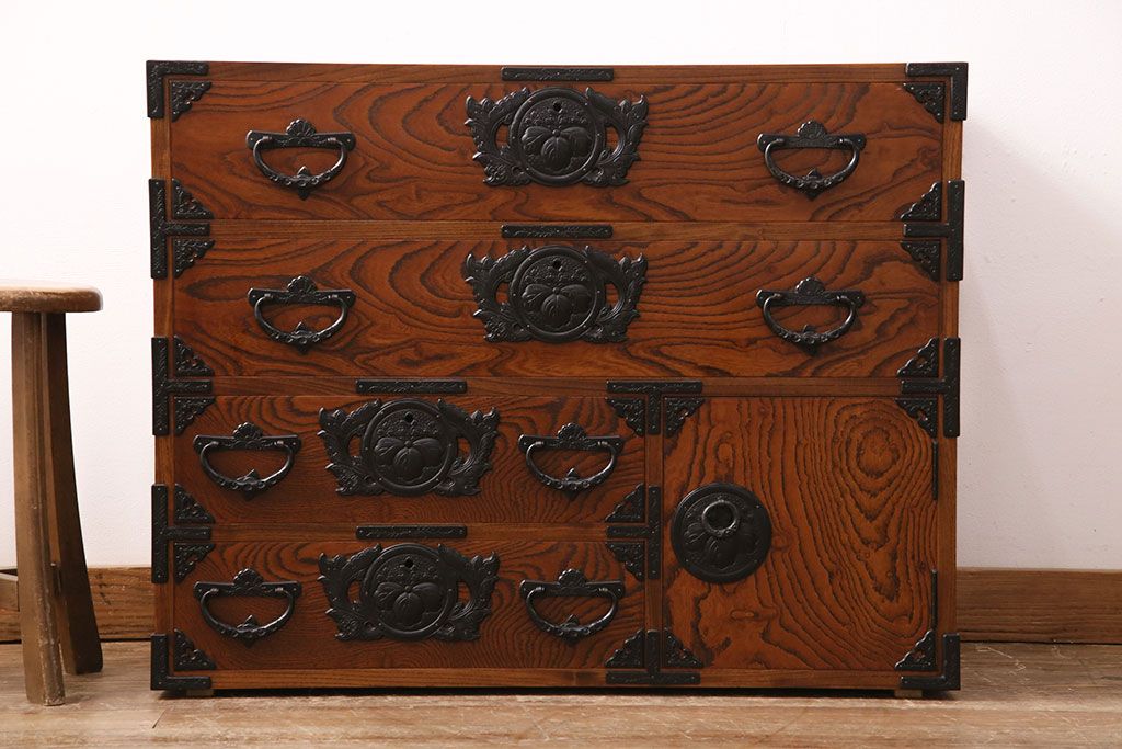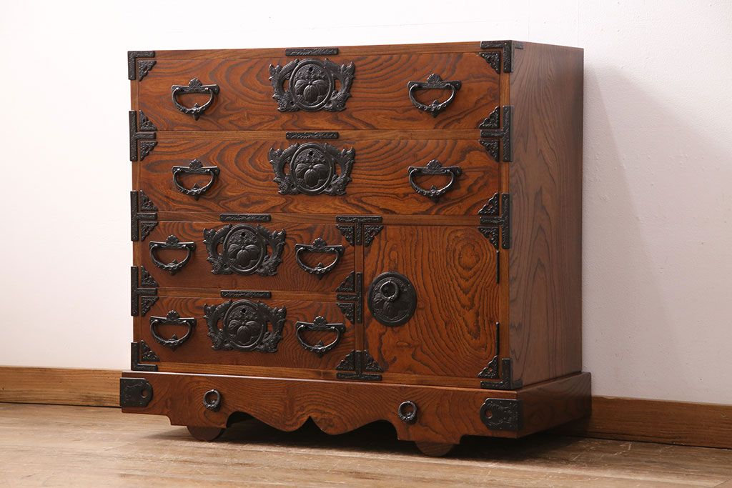ラフジュ工房> 和箪笥> 衣装箪笥 > 中古 伝統民芸 岩谷堂箪笥 個性溢れる伝統的なデザインが魅力的な車箪笥(衣装箪笥、和タンス、引き出し)(R-049794)