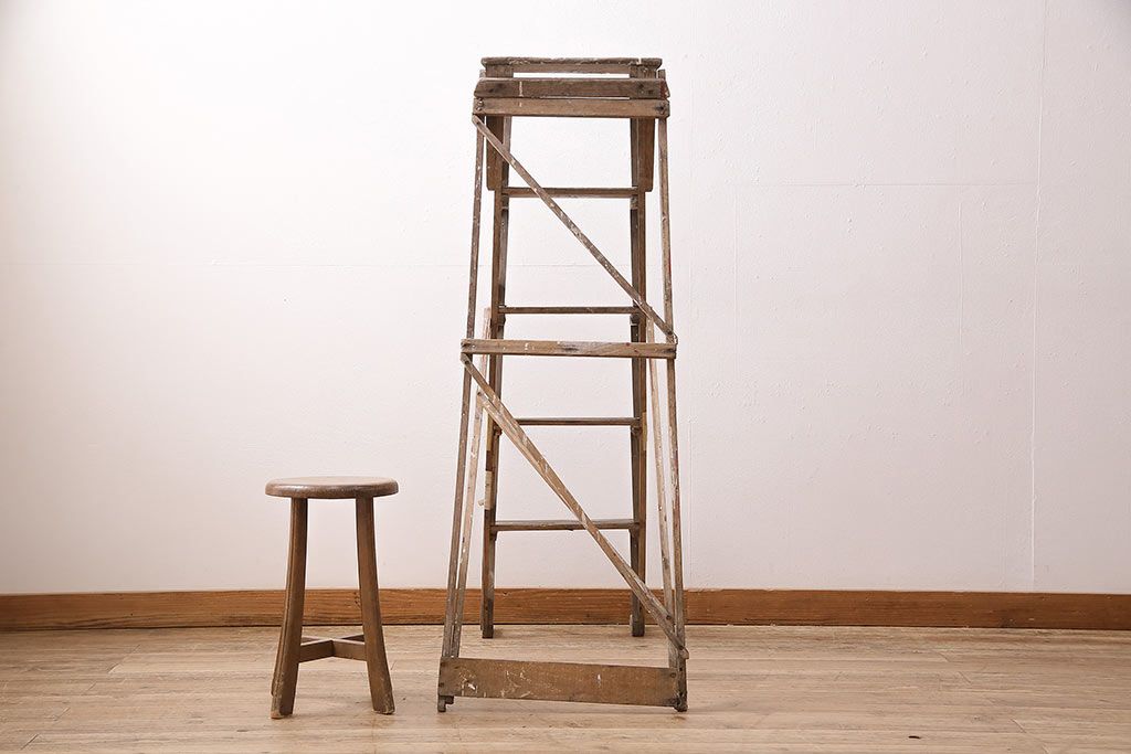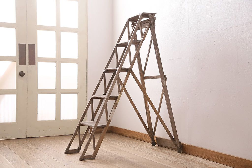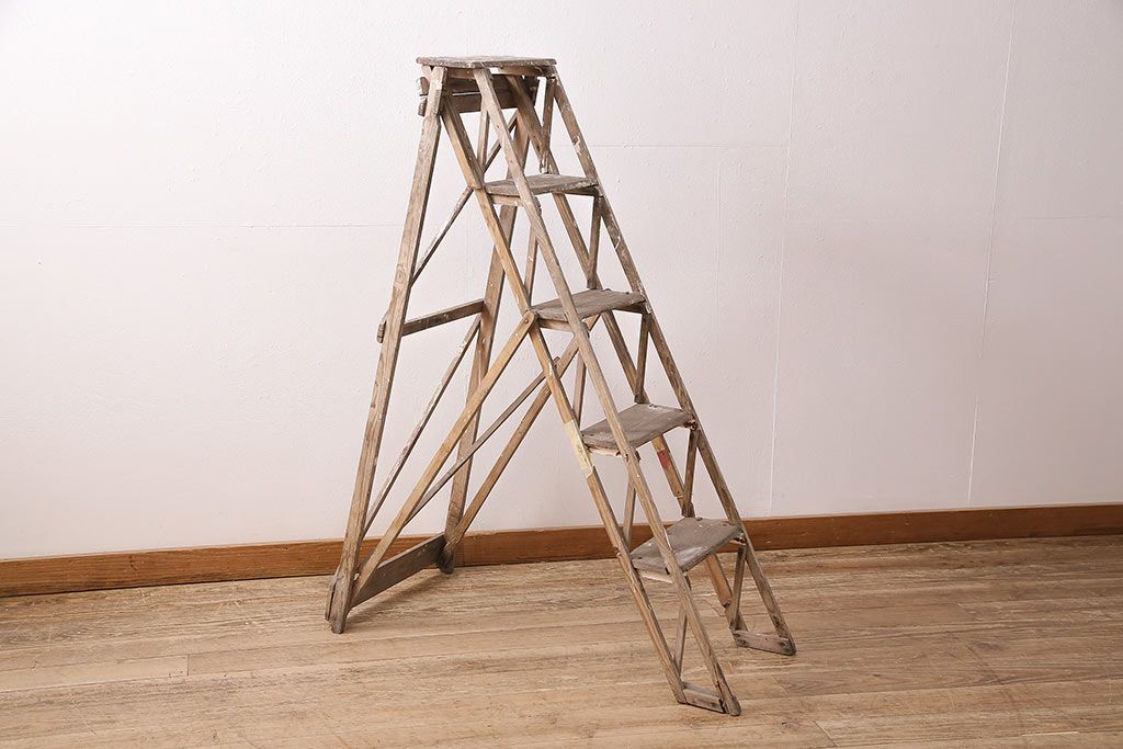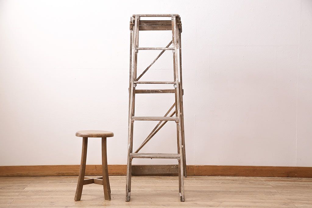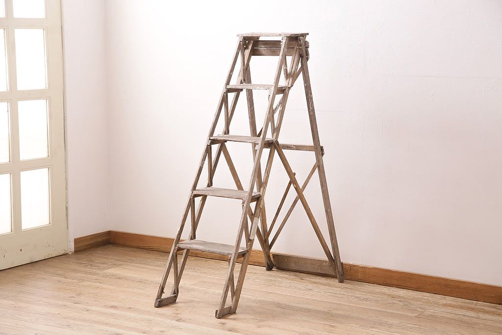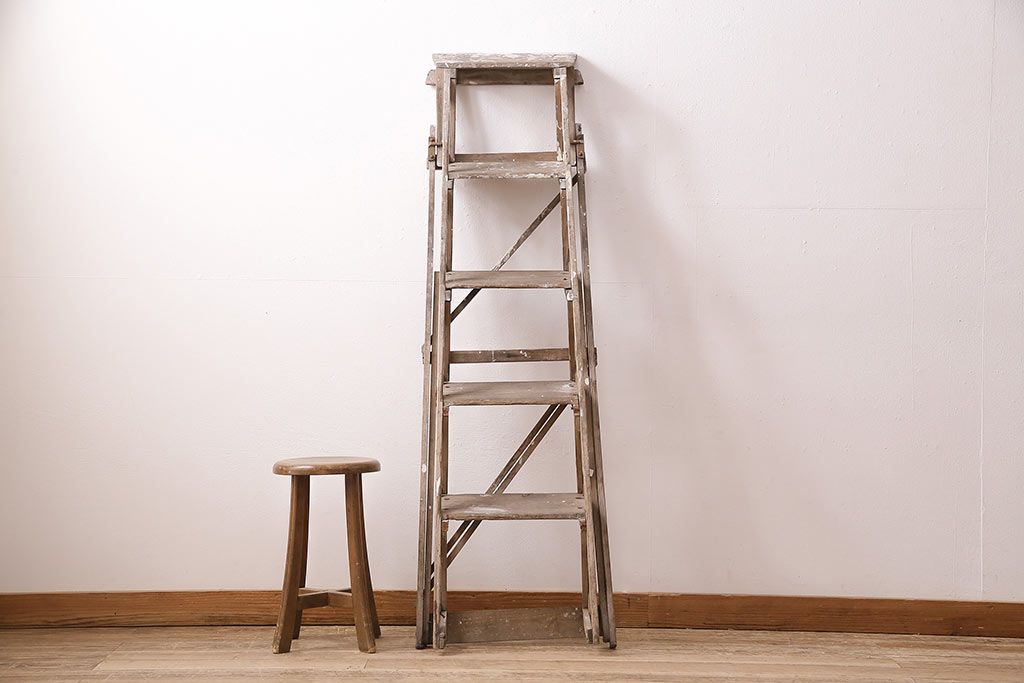 フランスアンティーク 使い込まれた風合いが魅力のラダー(はしご、ディスプレイ用)(R-048785)