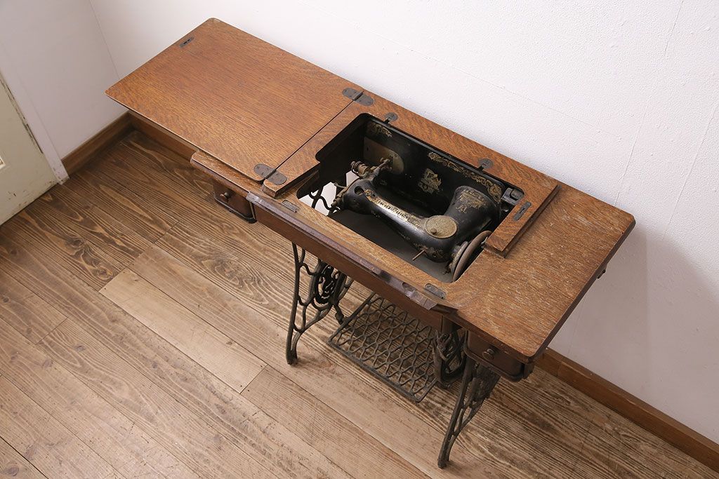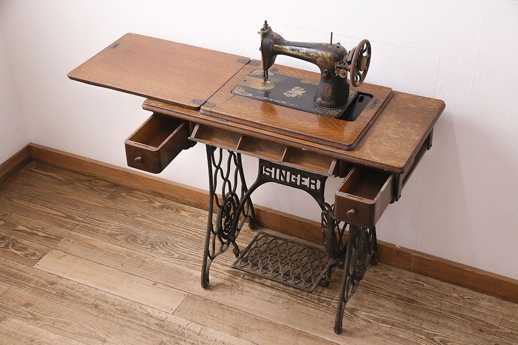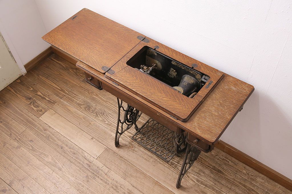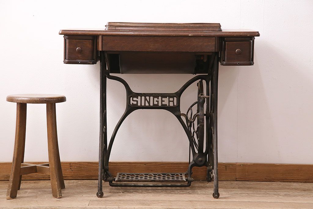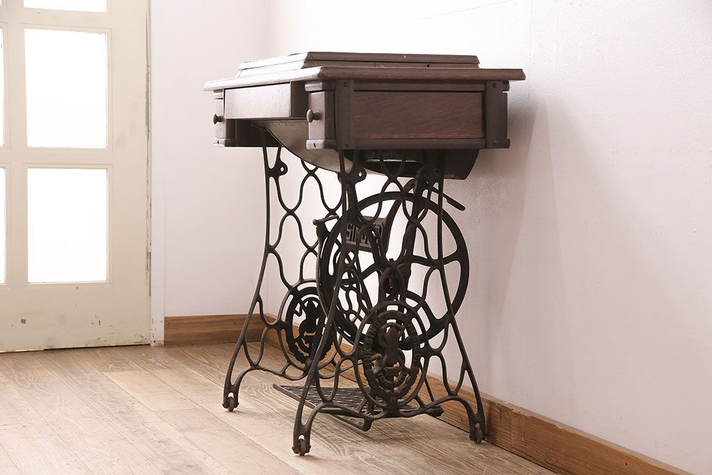 ジャンク品 SINGER(シンガー)社 お洒落なアンティークの空間を演出するミシンテーブル(シンガーミシン、ミシン台、ディスプレイ、工業用ミシン)(R-048822)です。