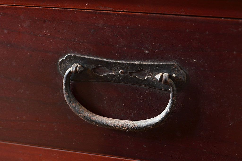 和箪笥> 夜具箪笥 > 和製アンティーク ヒノキ材・ケヤキ材 収納力抜群!漆の赤みがかった色味が魅力の収納箪笥(夜具箪笥、布団箪笥、水屋箪笥、ローボード、リビングボード、引き出し)(R-048648)