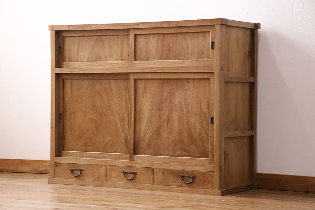 キャビネット・戸棚> サイドボード > 大正期の関東水屋箪笥をリペア&カスタム!ストリップド(剥離)加工を施し、天板を張り替え。可動式の棚板を設置。(収納棚、戸棚、食器棚)