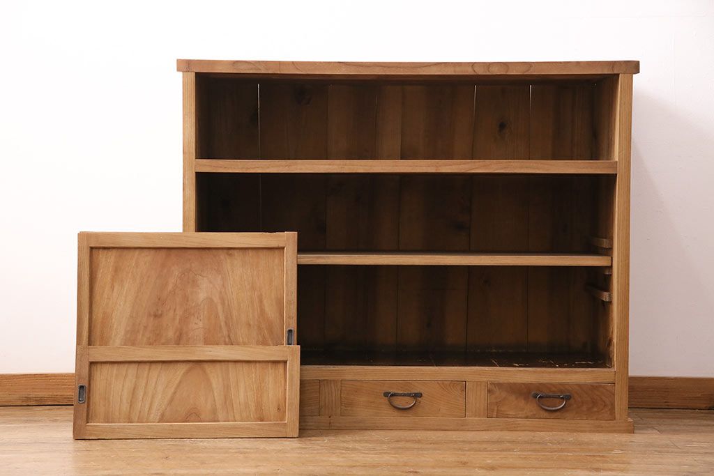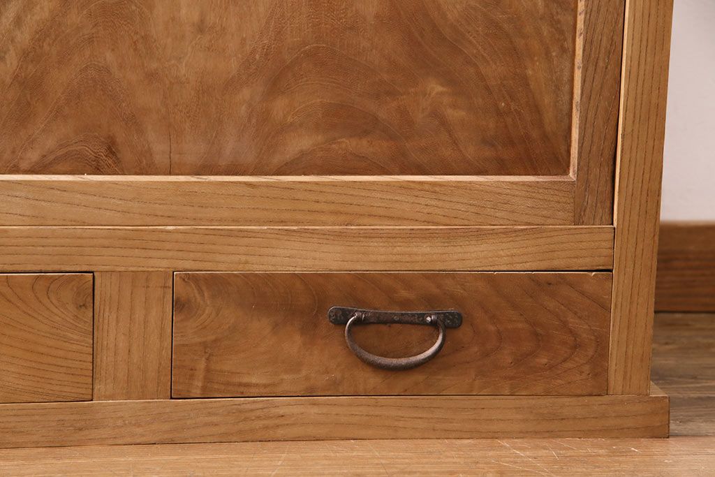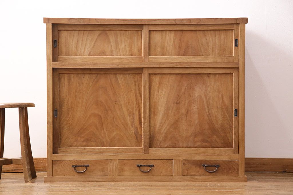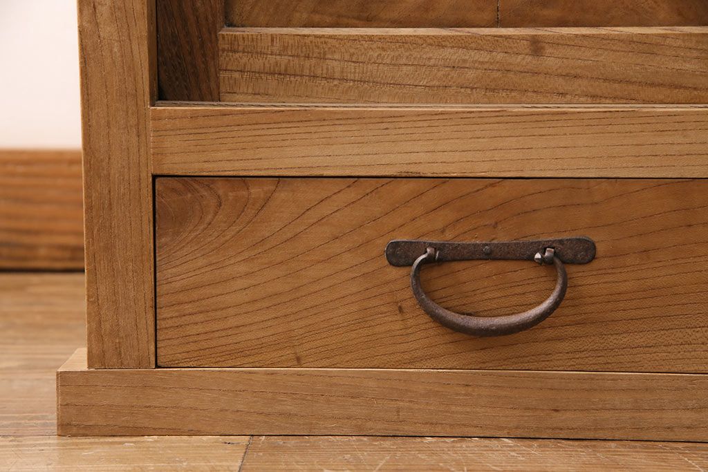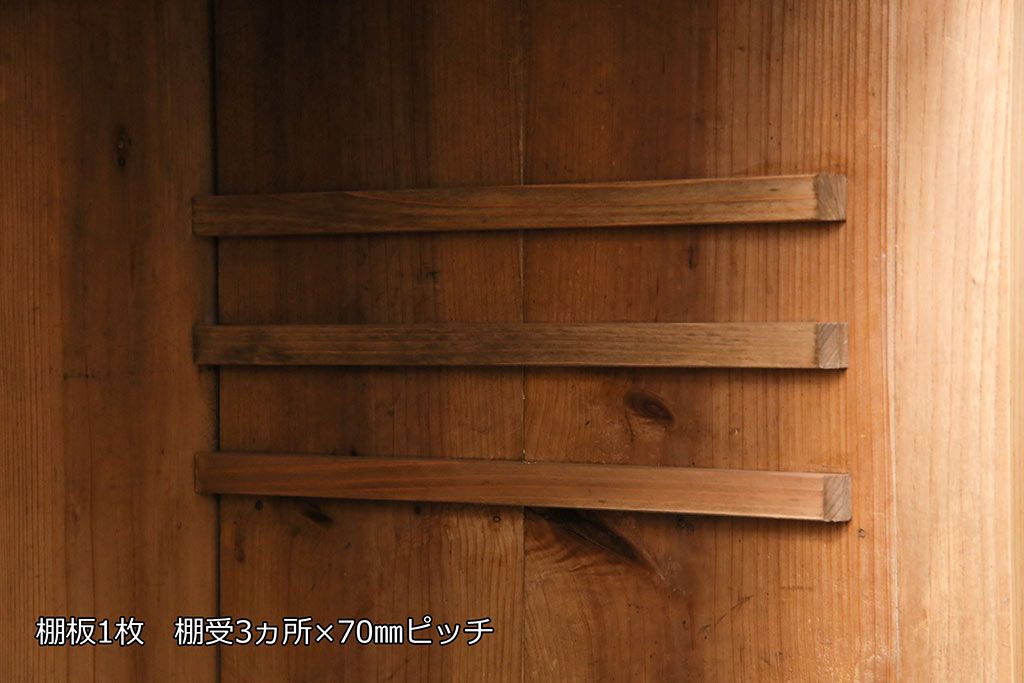 和箪笥> 茶箪笥・茶棚 > 大正期の関東水屋箪笥をリペア&カスタム!ストリップド(剥離)加工を施し、天板を張り替え。可動式の棚板を設置。(収納棚、戸棚、食器棚)