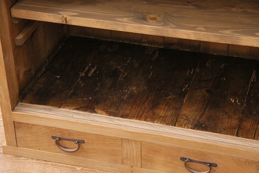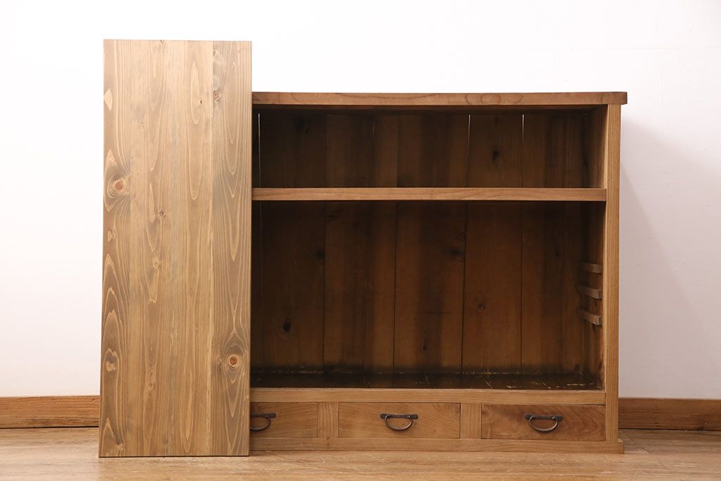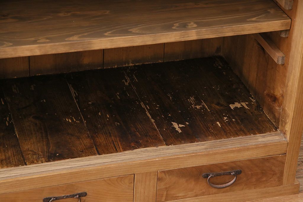 和箪笥> 水屋箪笥 > 大正期の関東水屋箪笥をリペア&カスタム!ストリップド(剥離)加工を施し、天板を張り替え。可動式の棚板を設置。(収納棚、戸棚、食器棚)