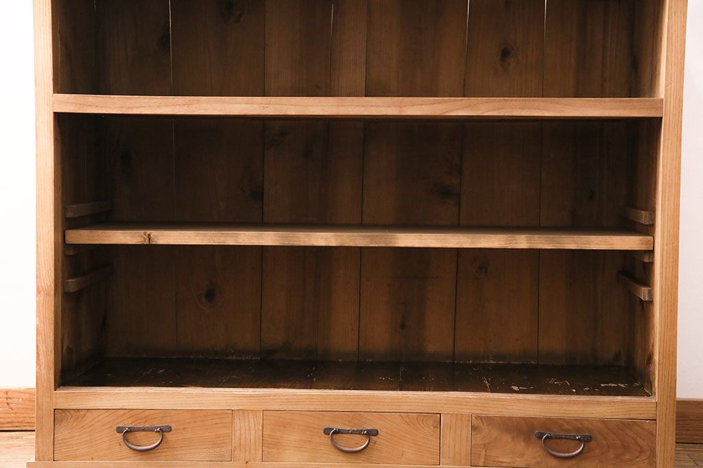 セミオーダー家具実績 > 大正期の関東水屋箪笥をリペア&カスタム!ストリップド(剥離)加工を施し、天板を張り替え。可動式の棚板を設置。(収納棚、戸棚、食器棚)