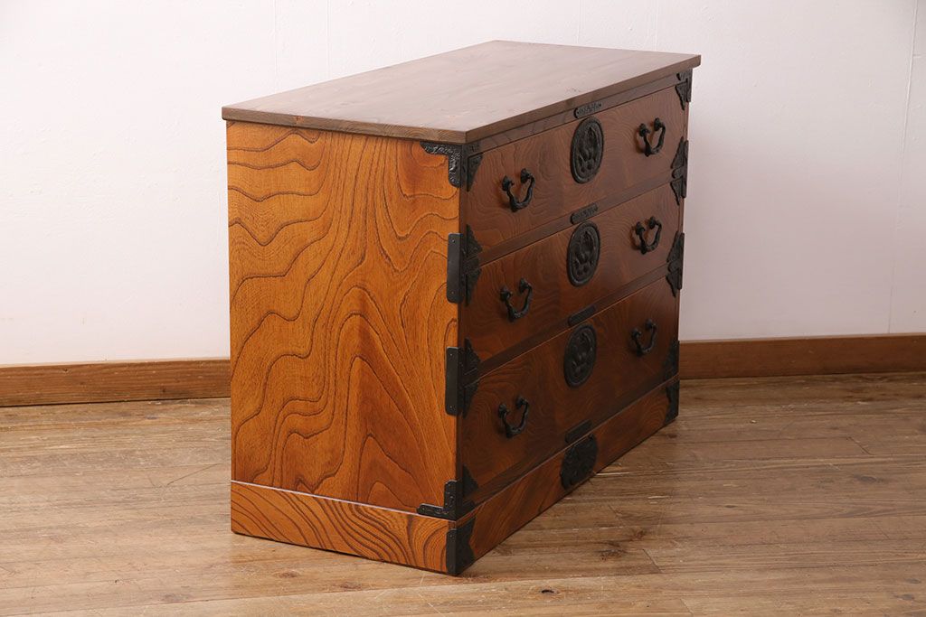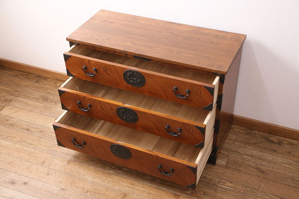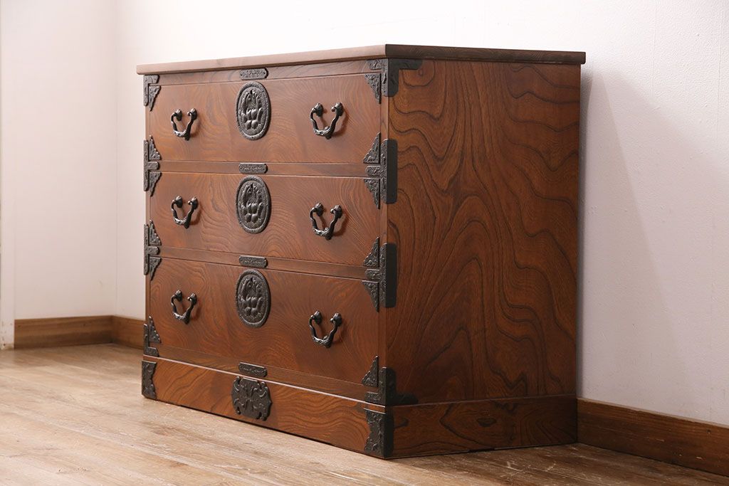 和箪笥> 衣装箪笥 > 中古 美品 伝統工芸 岩谷堂箪笥 天板リメイク・栗無垢材 美しい木肌が上質な雰囲気を醸し出すローチェスト(衣装箪笥、テレビ台、引き出し、ローボード)(R-049806)