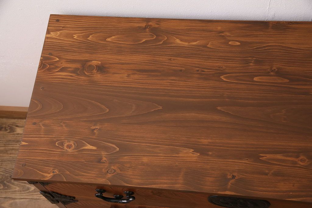 キャビネット・戸棚> テレビ台・ローボード > 中古 美品 伝統工芸 岩谷堂箪笥 天板リメイク・栗無垢材 美しい木肌が上質な雰囲気を醸し出すローチェスト(衣装箪笥、テレビ台、引き出し、ローボード)(R-049806)