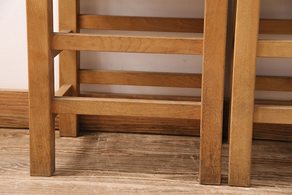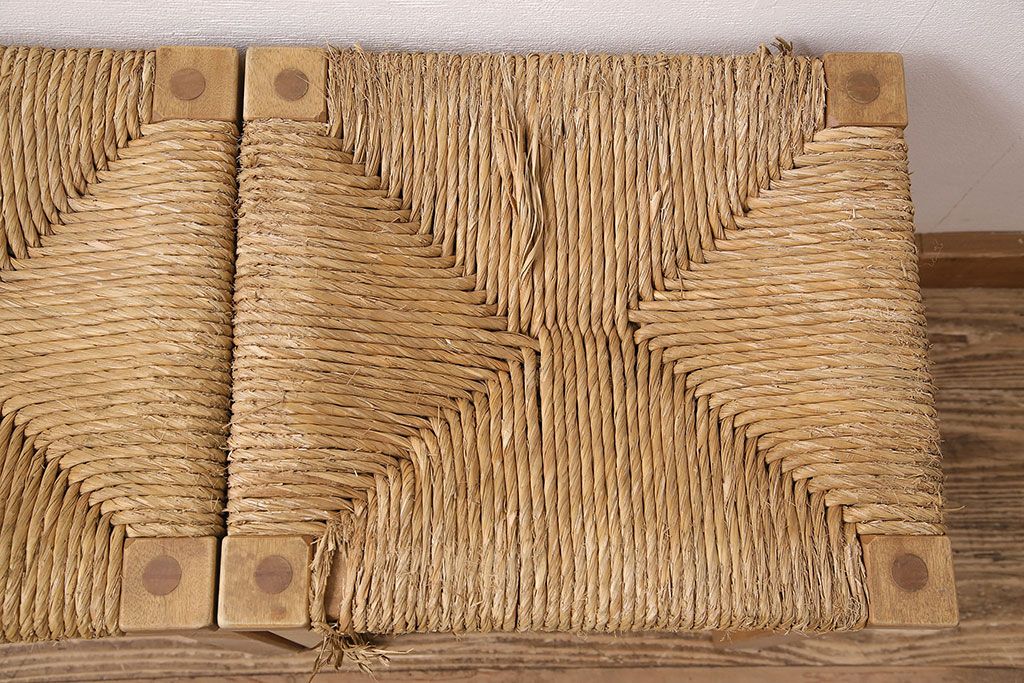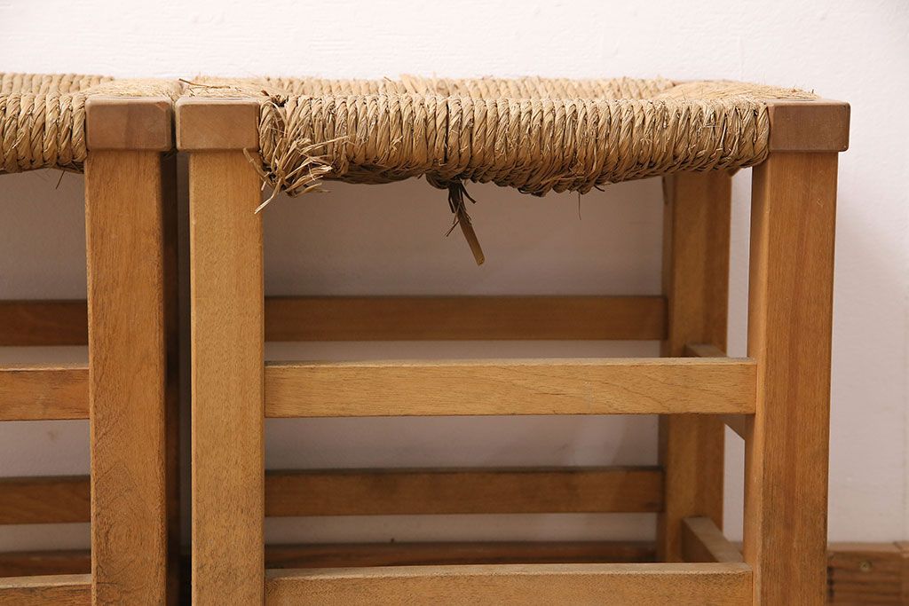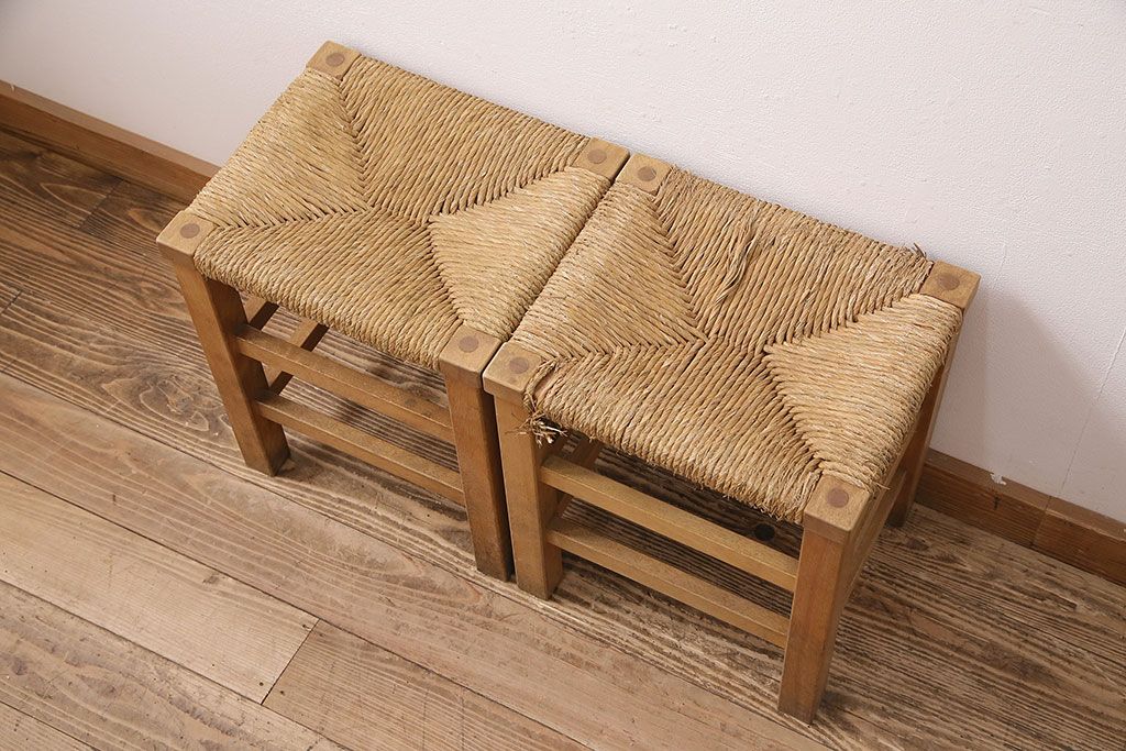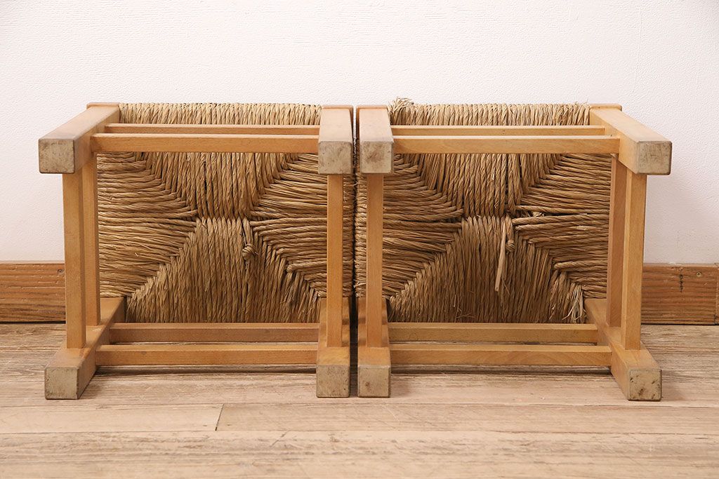民芸家具 > ヴィンテージ 松本民芸家具 初期モデル ラッシ座面がおしゃれ!素朴な木肌が味わい深いスツール2脚セット(チェア、椅子、ビンテージ)(R-048690)