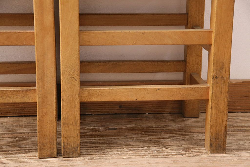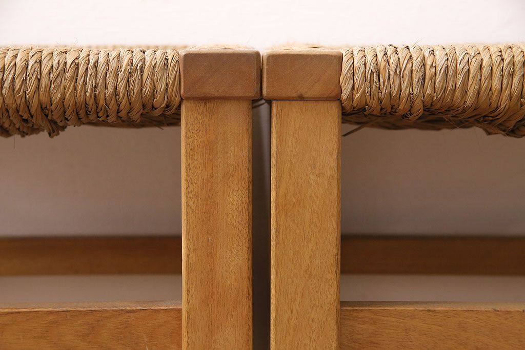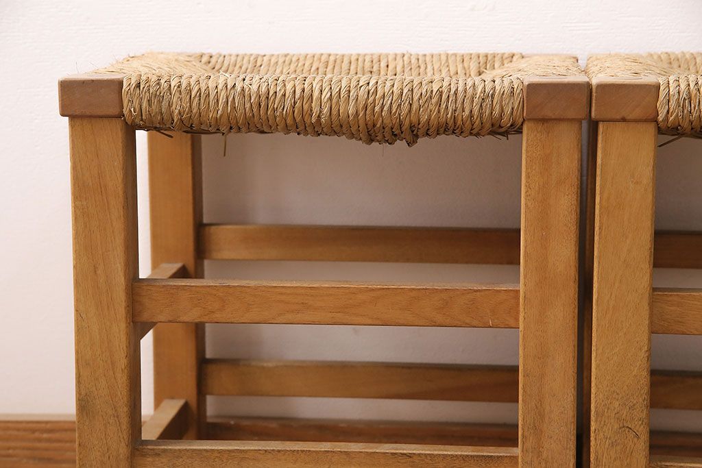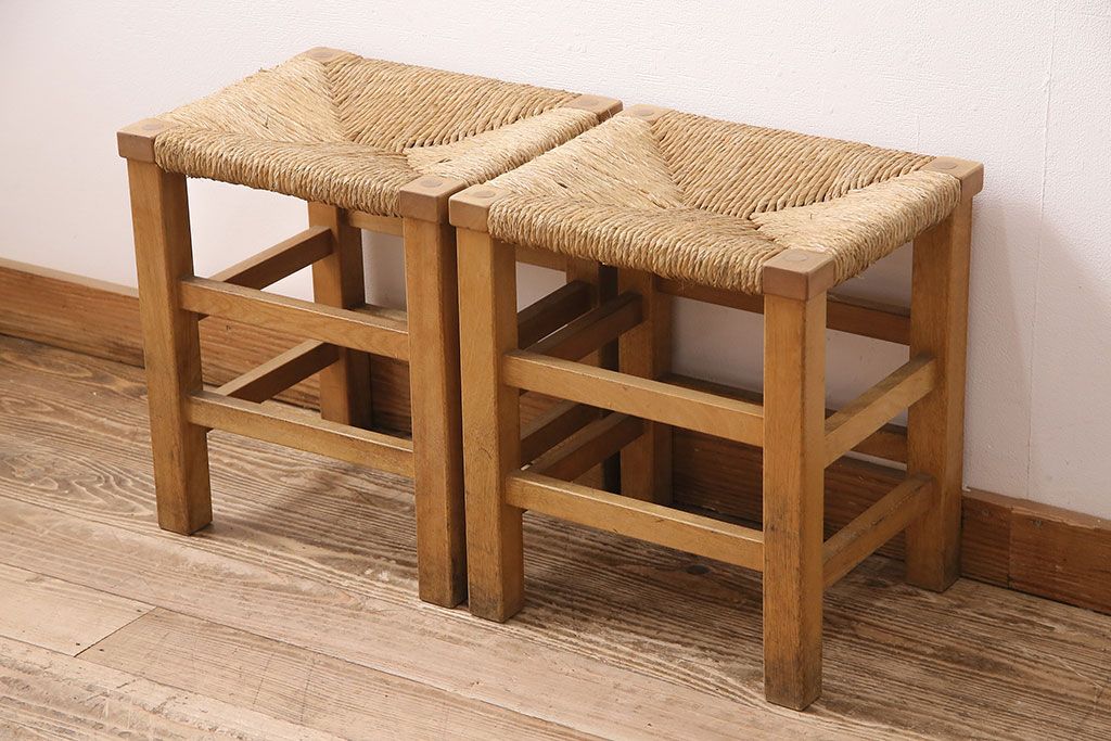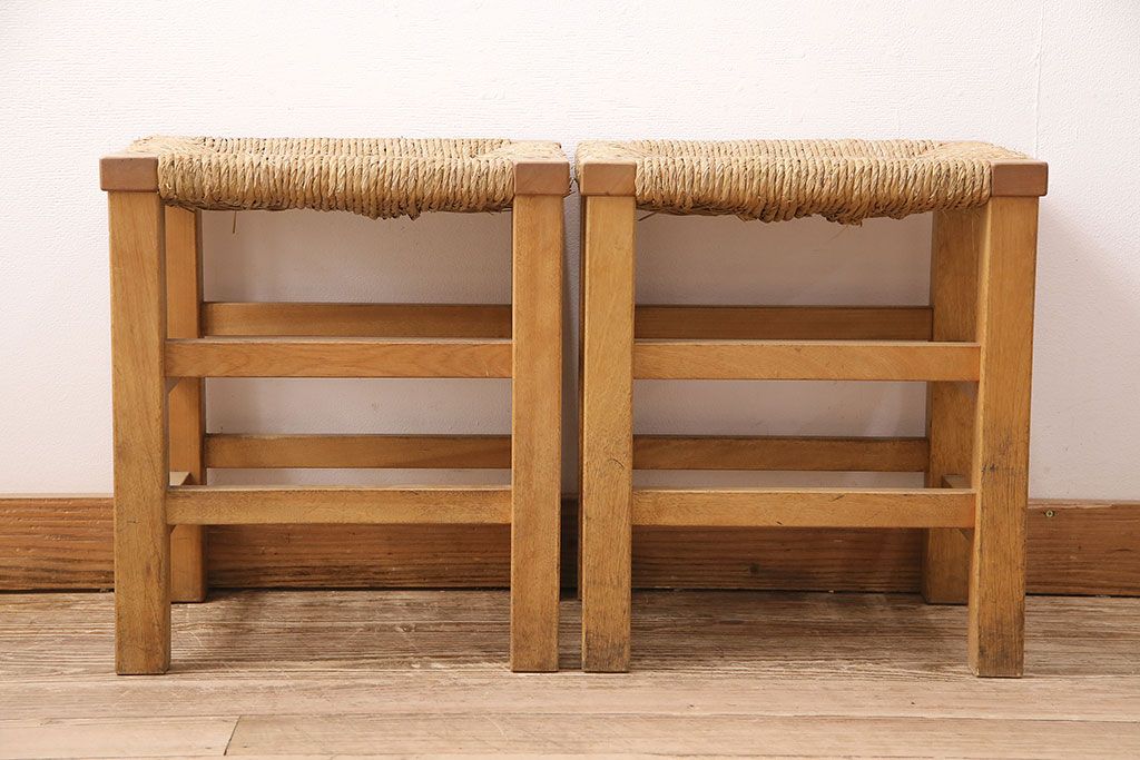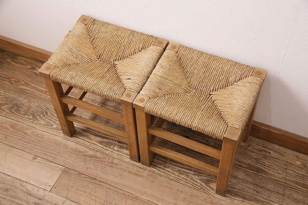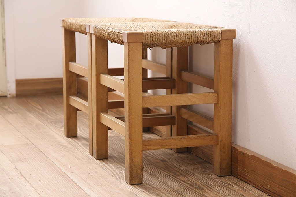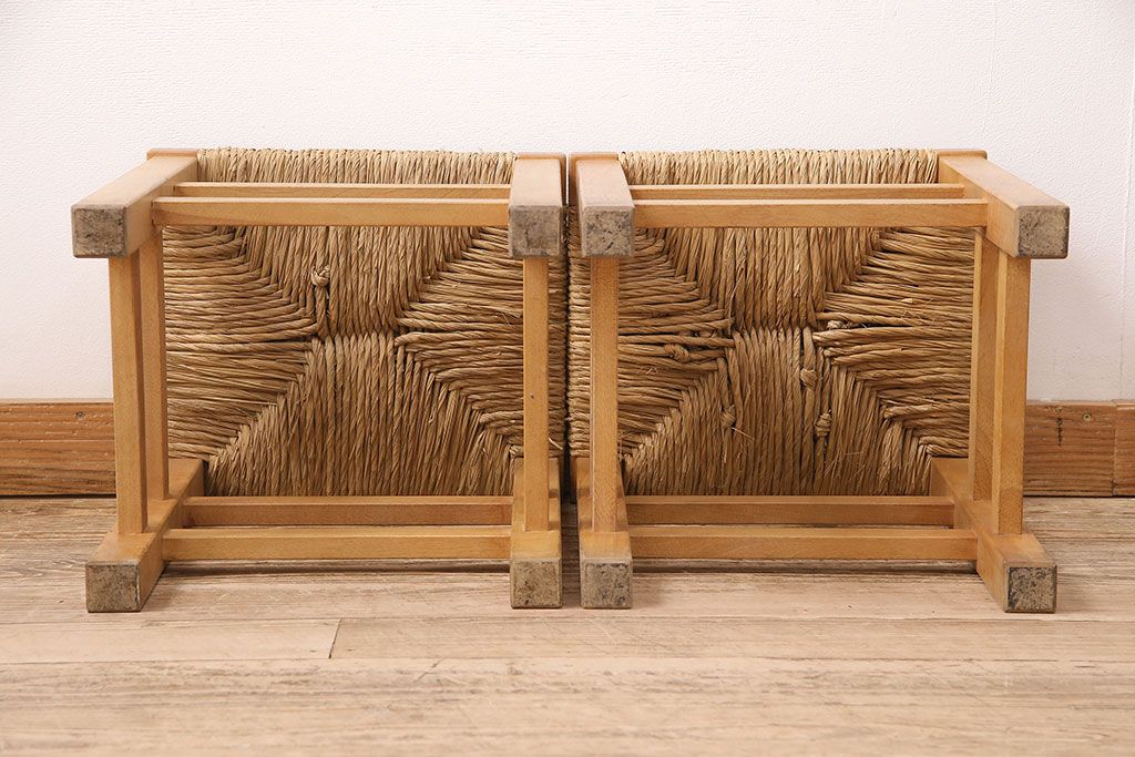 民芸家具 > ヴィンテージ 松本民芸家具 初期モデル ラッシ座面がおしゃれ!素朴な木肌が味わい深いスツール2脚セット(チェア、椅子、ビンテージ)(R-048691)