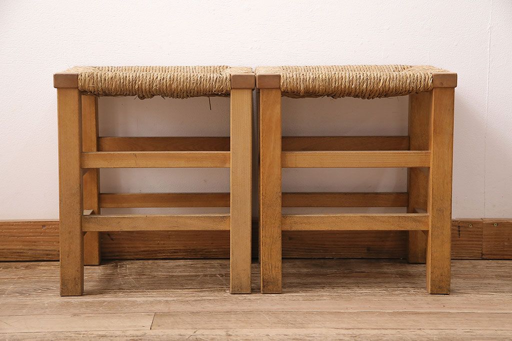 ヴィンテージ 松本民芸家具 初期モデル ラッシ座面がおしゃれ!素朴な木肌が味わい深いスツール2脚セット(チェア、椅子、ビンテージ)(R-048691)