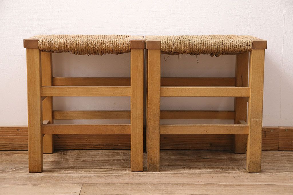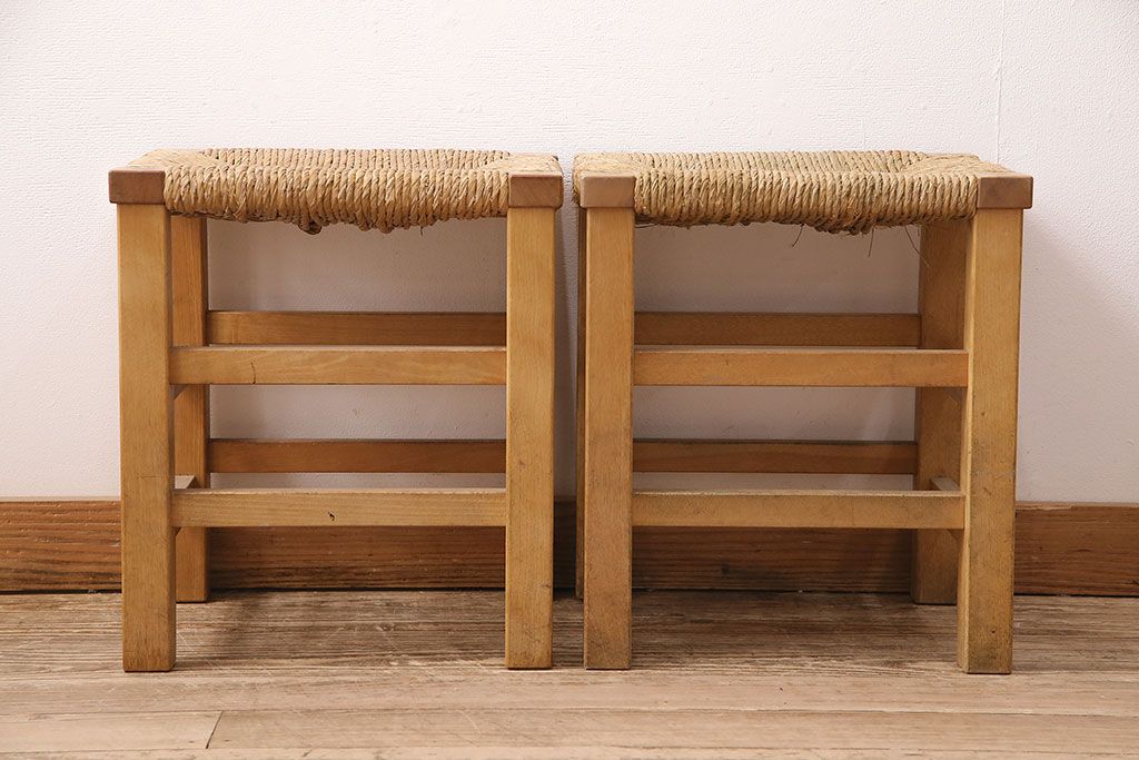 ヴィンテージ 松本民芸家具 初期モデル ラッシ座面がおしゃれ!素朴な木肌が味わい深いスツール2脚セット(チェア、椅子、ビンテージ)(R-048692)