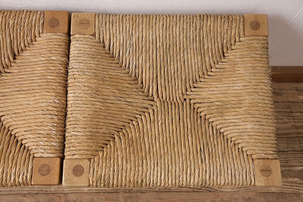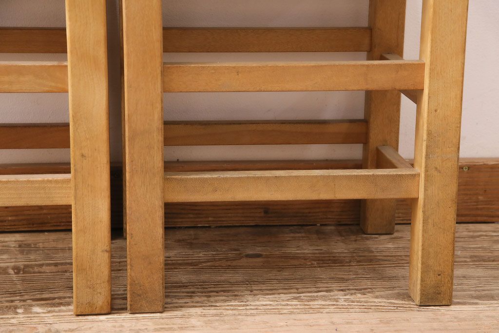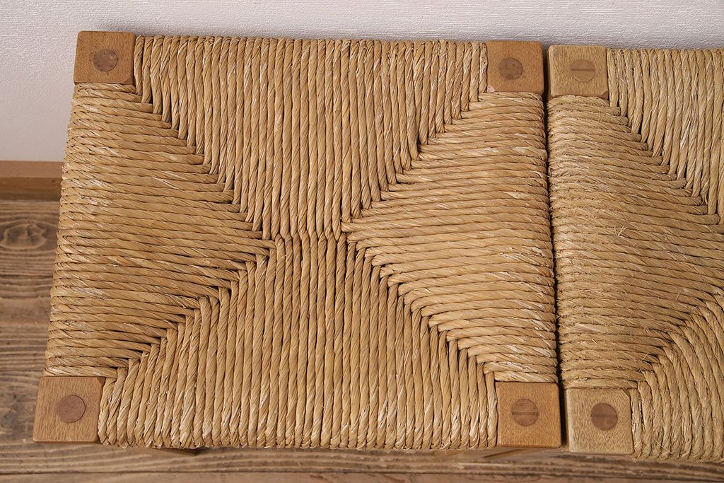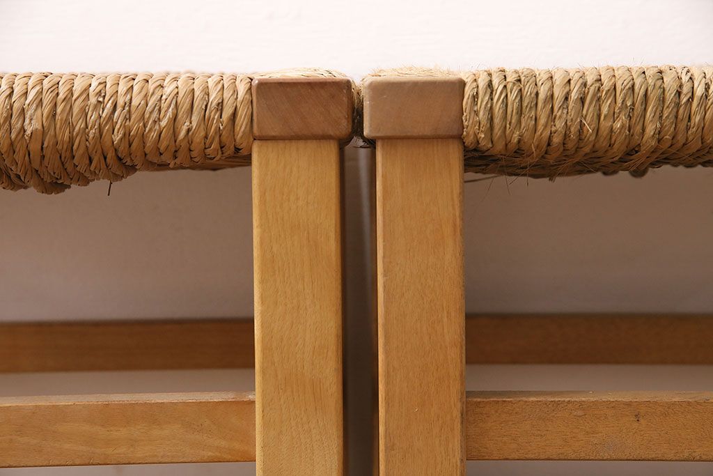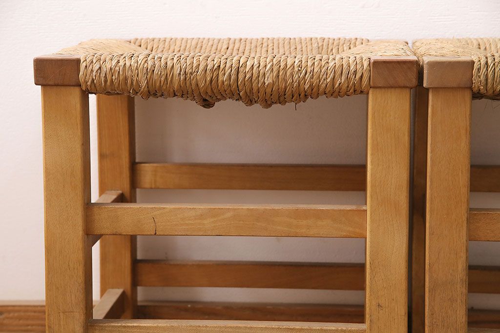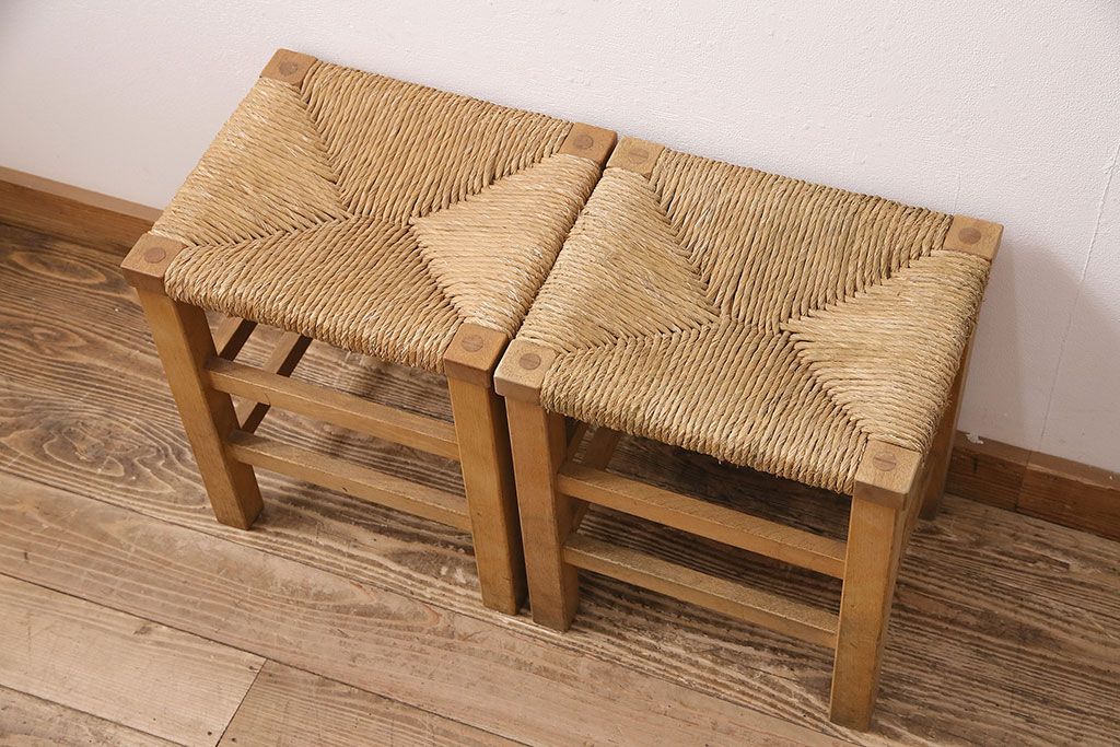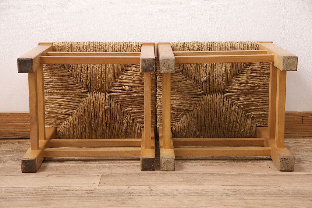 民芸家具 > ヴィンテージ 松本民芸家具 初期モデル ラッシ座面がおしゃれ!素朴な木肌が味わい深いスツール2脚セット(チェア、椅子、ビンテージ)(R-048692)