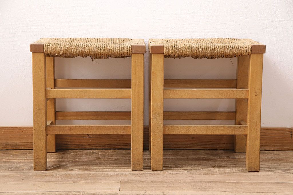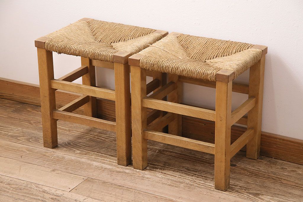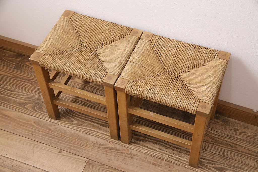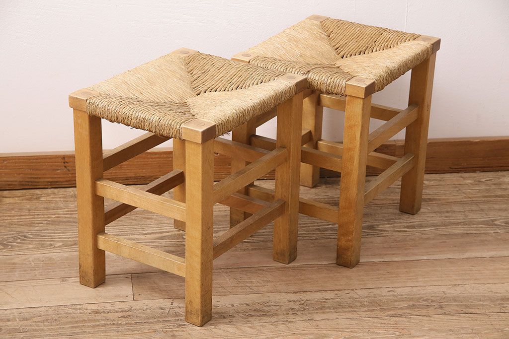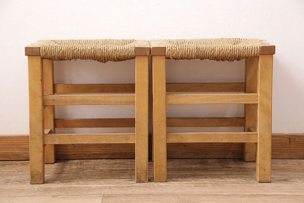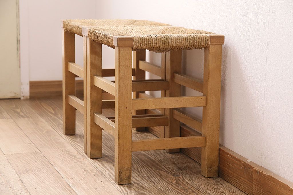 ヴィンテージ 松本民芸家具 初期モデル ラッシ座面がおしゃれ!素朴な木肌が味わい深いスツール2脚セット(チェア、椅子)(R-048693)です。