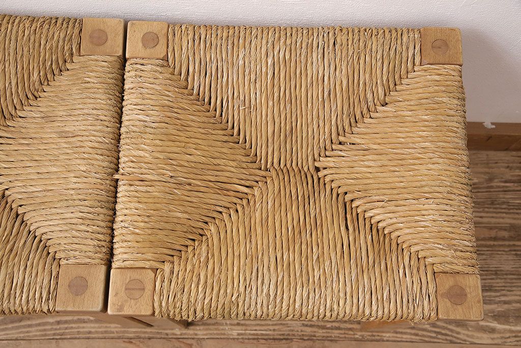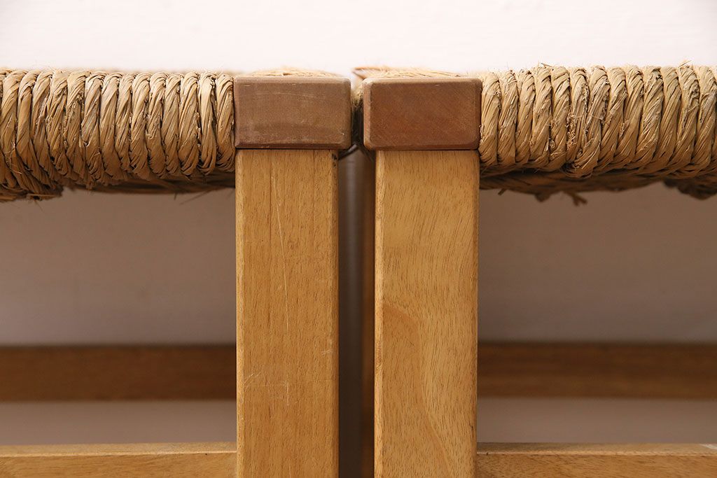 民芸家具 > ヴィンテージ 松本民芸家具 初期モデル ラッシ座面がおしゃれ!素朴な木肌が味わい深いスツール2脚セット(チェア、椅子、ビンテージ)(R-048693)