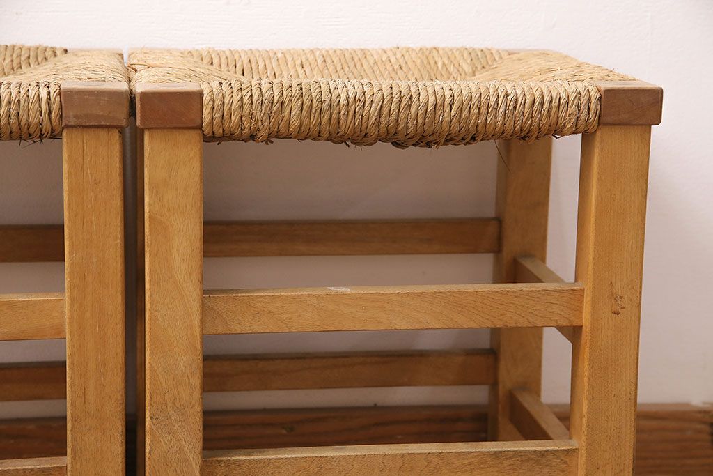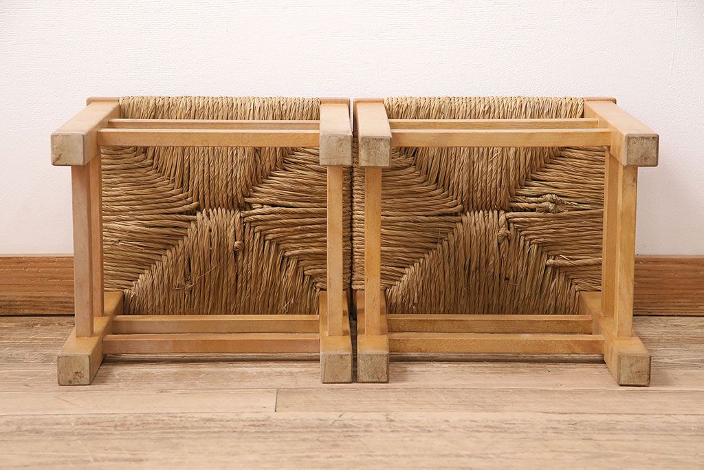 ヴィンテージ 松本民芸家具 初期モデル ラッシ座面がおしゃれ!素朴な木肌が味わい深いスツール2脚セット(チェア、椅子、ビンテージ)(R-048693)